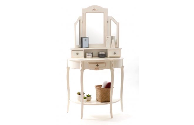 Elle allie praticité et look grâce à ses trois tiroirs et des petits détails qui font toute la différence ! Déclinée dans une teinte de blanc patiné pour un effet vieilli authentique, elle est dotée de poignées en métal travaillé et d'un miroir triptyque. Le motif coquillage signe cette collection baroque BIANCA, qui fera merveille pour créer une ambiance féminine et romantique. Côté entretien, un simple chiffon doux antistatique est amplement suffisant.