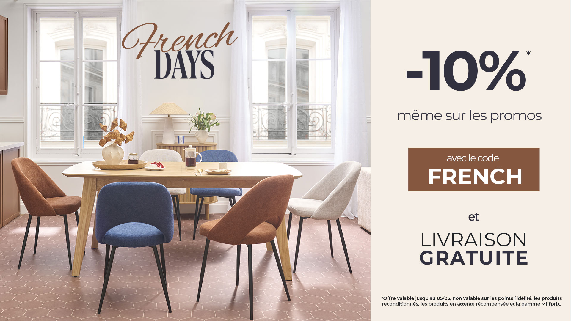 (1) Livraison gratuite valable uniquement pour les livraisons en rez-de-chaussée, expédition possible le jour même pour les produits en stock et pour toute commande passée avant 15h.