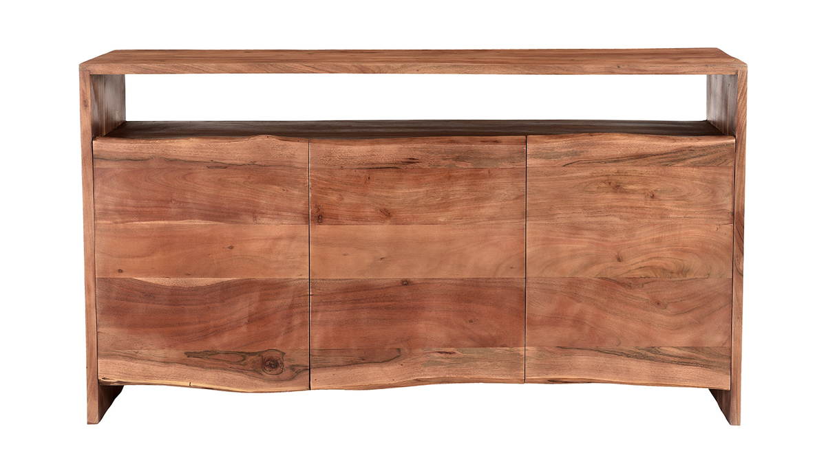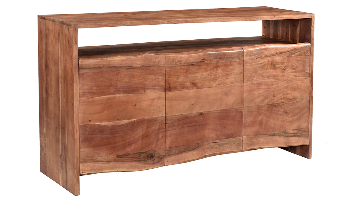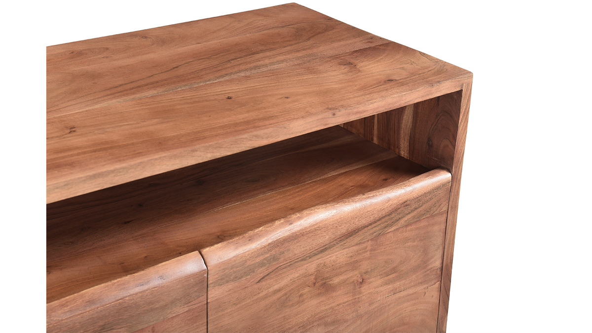 Forme originelle. La nature est une source d'inspiration sans fin et l'équipe passionnée de designers Miliboo en tire le meilleur ! Ce buffet en acacia massif séduit par sa silhouette vibrante ! Comme vivante, la matière travaillée à la main selon des techniques ancestrales, séduit par son mouvement, ses noeuds et nervures nuancées. Issu d'un savoir-faire artisanal, chaque modèle BOHEMIAN est ainsi unique, riche de sa propre histoire et du travail sur la matière dont il résulte. Plébiscitée pour la confection de mobilier d'intérieur, l'acacia est une essence naturellement dure et dense particulièrement esthétique. Ce bois imputrescible, se distingue par ses veinures allongées, mais également ses variations de couleurs. Avec le temps, l'exposition à la lumière et sources de chaleur, l'acacia est un bois clair dont le coloris jaune-vert à doré subit une coloration naturelle (brune, rougeoyante, reflets gris).