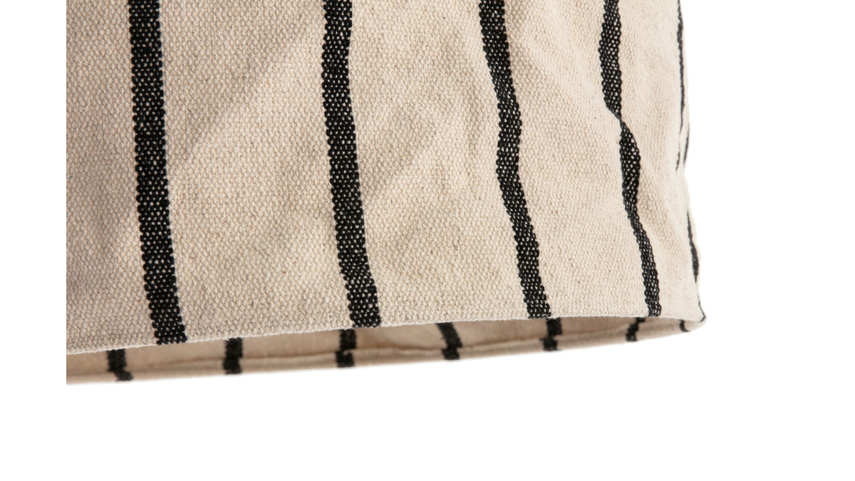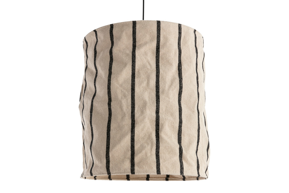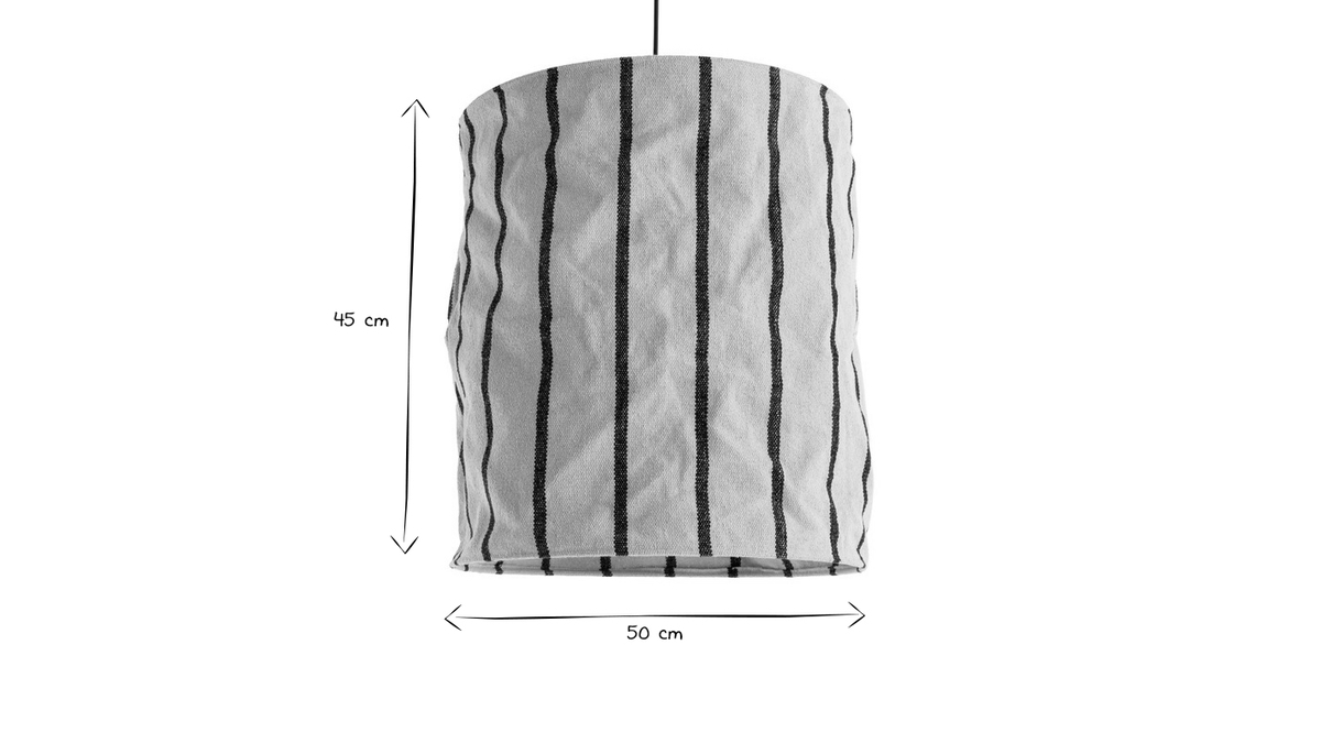 Dans un esprit slow life très actuel, cet abat-jour rayé en tissu coton contribue à faire de nos intérieurs un cocon accueillant, un refuge hors du temps. Avec son joli bayadère naturel et noir, ce grand abat-jour fabriqué en France qui se distingue par ses belles dimensions D50 x H45 cm donnera à votre intérieur un petit air de vacances toute l'année. Suspendu au-dessus de la table à manger, FLEX donnera un côté aérien et au coin repas.