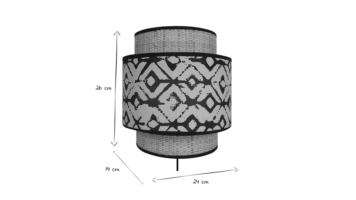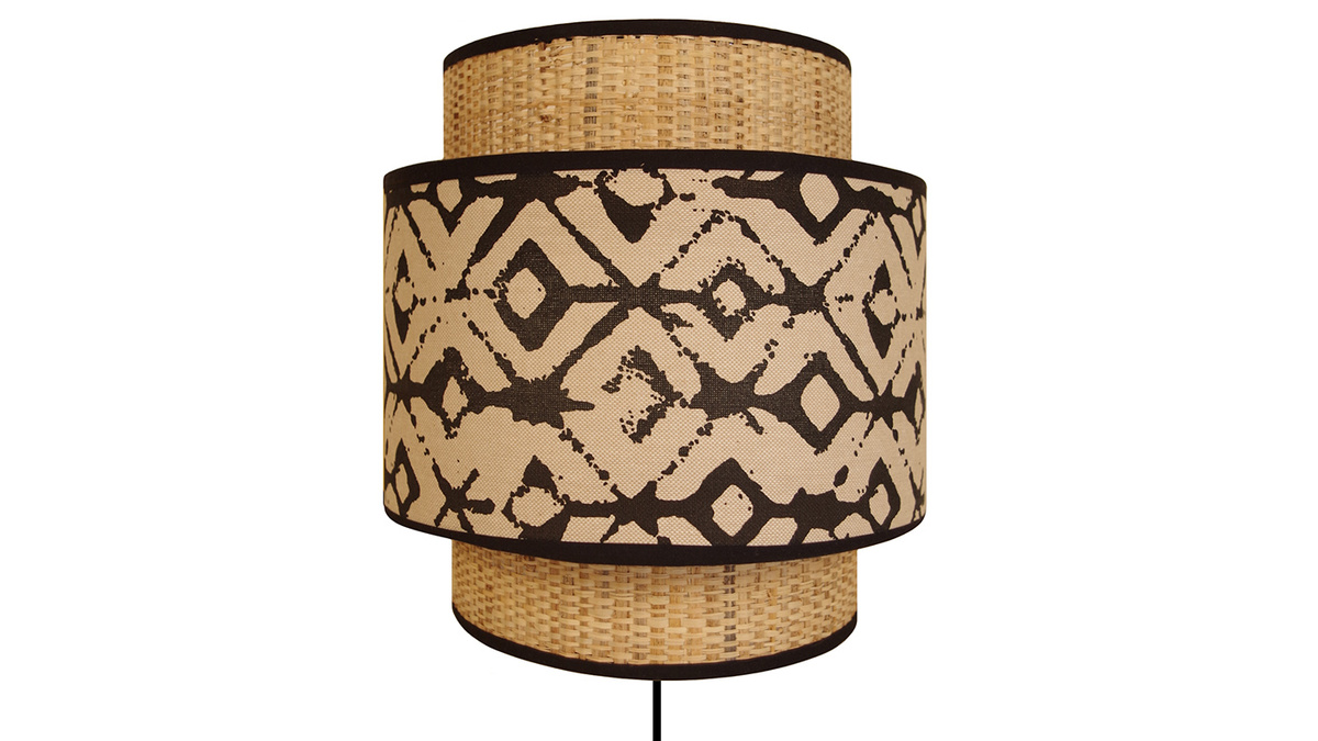 Avec son look bi-matière en toile de jute naturelle et tissu imprimé noir et beige, l'applique murale ZAZA est un luminaire au charme naturel. Aux dimensions L24 x P14 x H26 cm, cette petite applique naturelle est idéale pour créer une atmosphère cosy et une instaurer une ambiance qui invite au voyage. Elle associe l'authenticité du jute à la beauté d'un motif ethnique pour un rendu unique. On aime sa silhouette tout en relief formée par l'assemblage de deux abat-jour superposés.