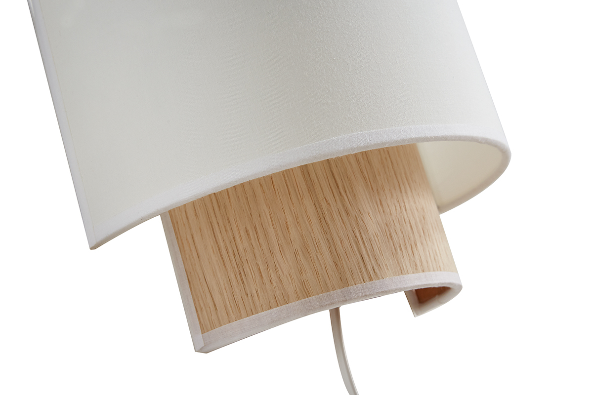 Imaginée par les designers Miliboo, cette applique fait la part belle à la matière. Le double abat-jour cylindrique conjugue harmonieusement le coton et le chêne clair. Ses lignes essentielles sont délicatement soulignées par le biais de couleur ton sur ton.