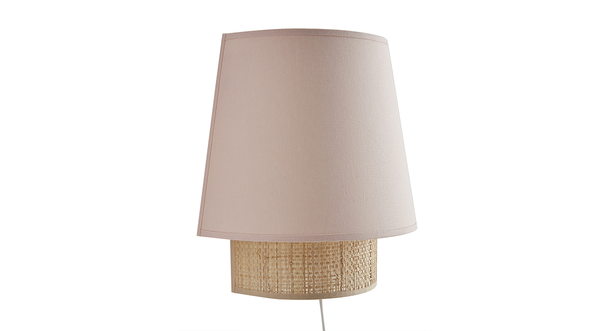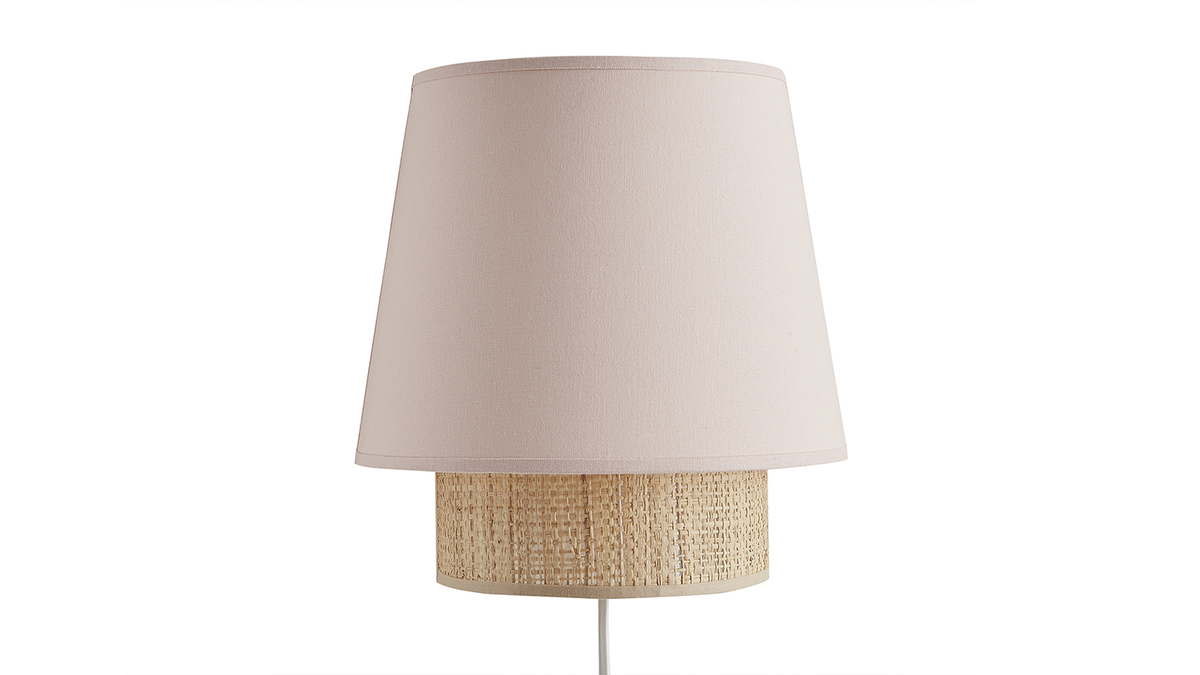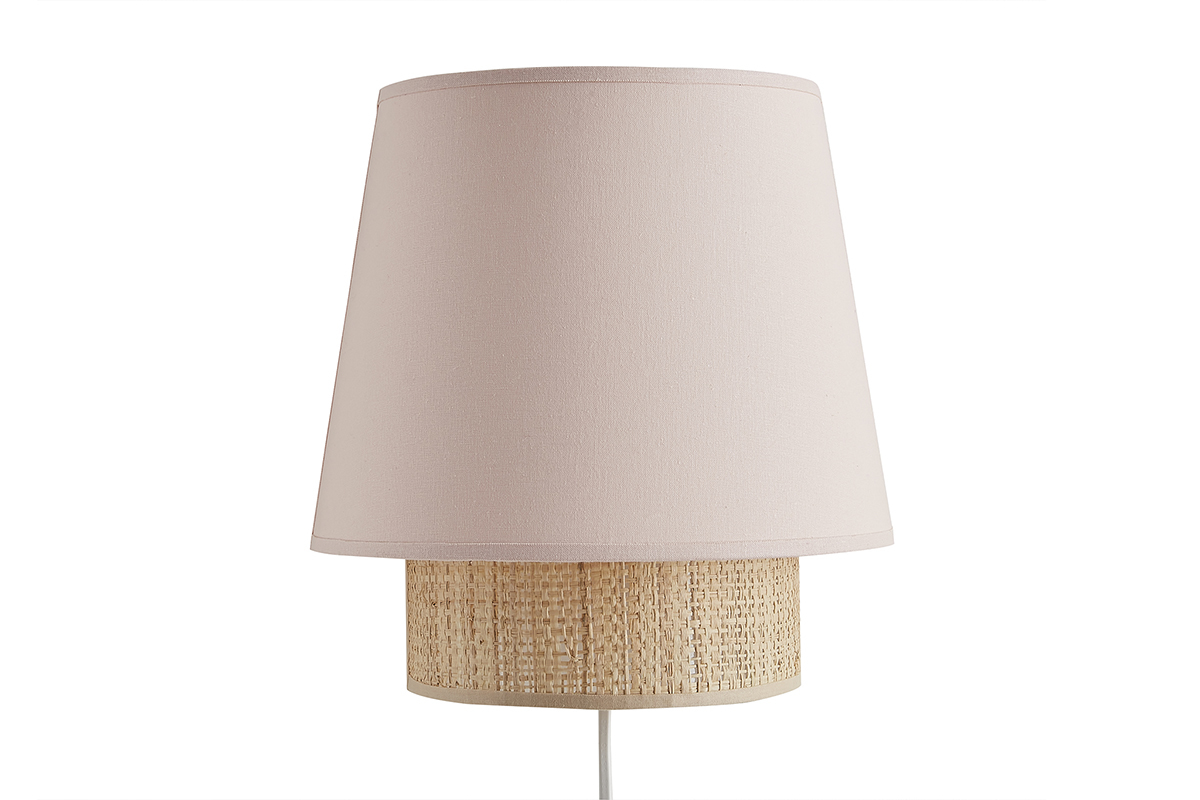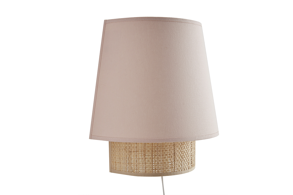 Avec JUME, nos designers revisitent la silhouette archétypale de l'abat-jour traditionnel. Ils ont imaginé une superposition de formes géométriques qu'ils déclinent dans une version des plus tendances : alliance d'un coton rose et d'une rabane naturelle. Avec son allure faussement classique, cette lampe murale rose et naturelle captive le regard tout en restant discrète. Elle diffuse une lumière douce et tamisée qui est principalement orientée vers le haut.