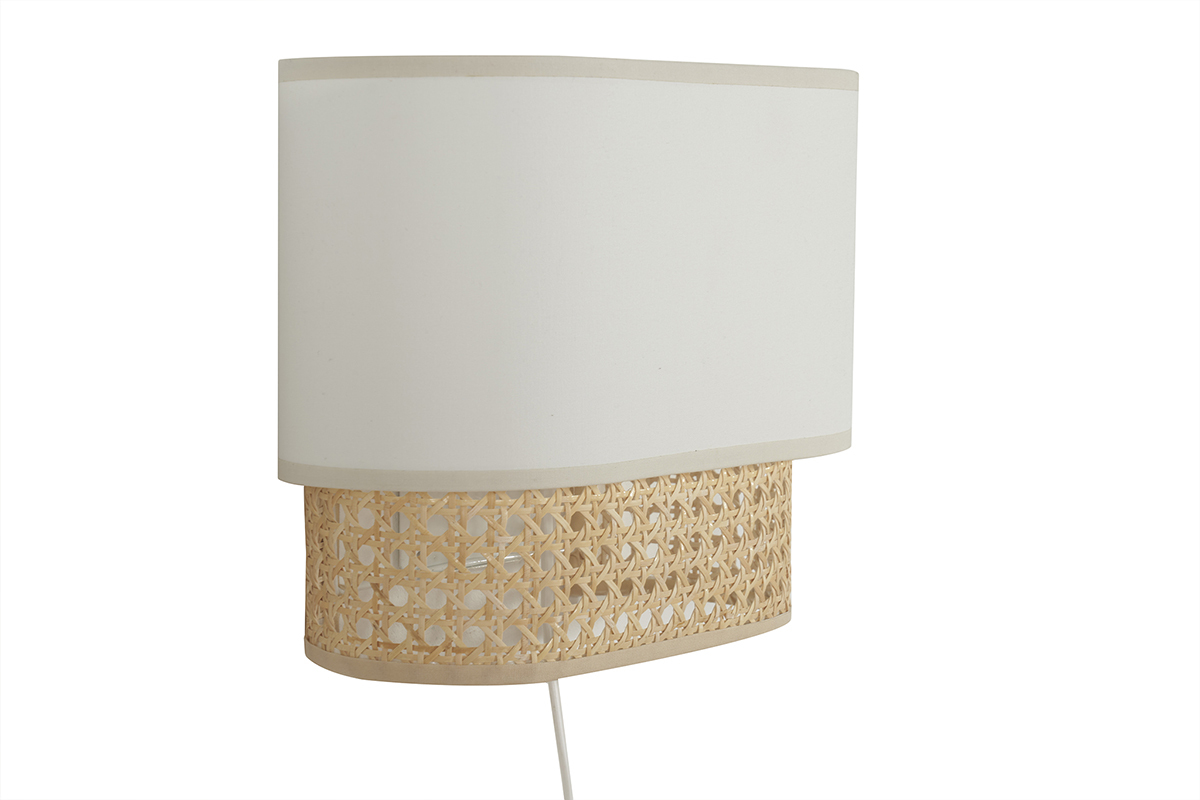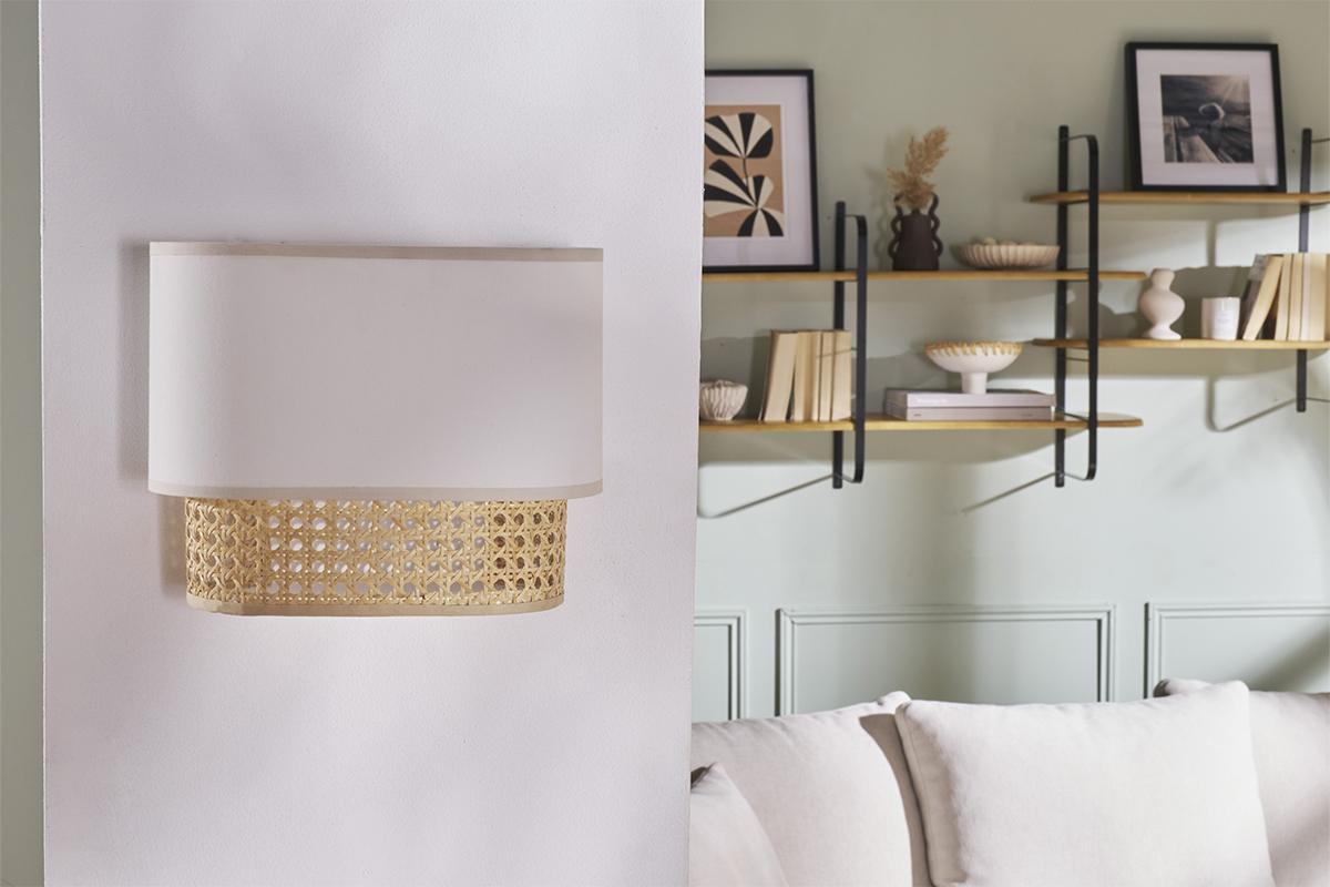 Parfaite pour libérer l'espace au sol ou sur le plateau de vos meubles de rangement - véritable gain de place - cette lampe décorative se place au mur. Avec ses dimensions L25 x P10 x H20 cm, on envisage cette petite applique murale blanche et cannage rotin autant en solo dans une pièce exiguë, que multipliée dans un espace longiligne comme un couloir.