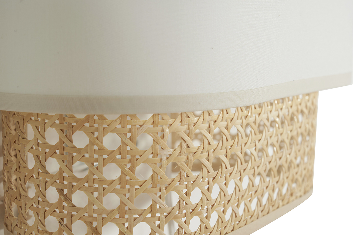 Formé par un double abat-jour en tissu coton blanc et en cannage de rotin, imaginé par la créative équipe de designers Miliboo, ce luminaire fabriqué en France se distingue par son naturel et son élégante simplicité.