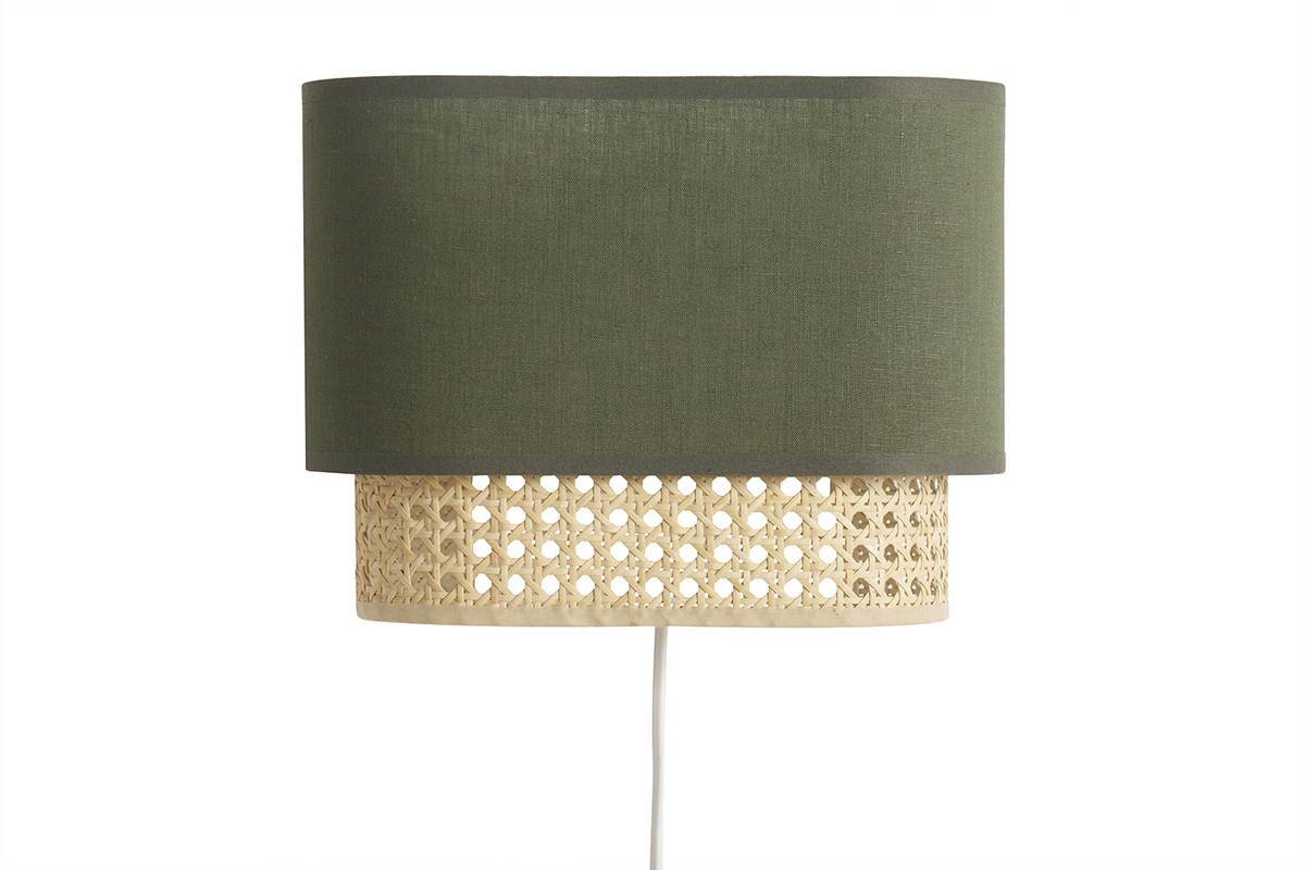 Parfaite pour libérer l'espace au sol ou sur le plateau de vos meubles de rangement - véritable gain de place - cette lampe décorative se place au mur. Avec ses dimensions L25 x P10 x H20 cm, on envisage cette petite applique murale vert kaki et cannage rotin autant en solo dans une pièce exiguë, que multipliée dans un espace longiligne comme un couloir.