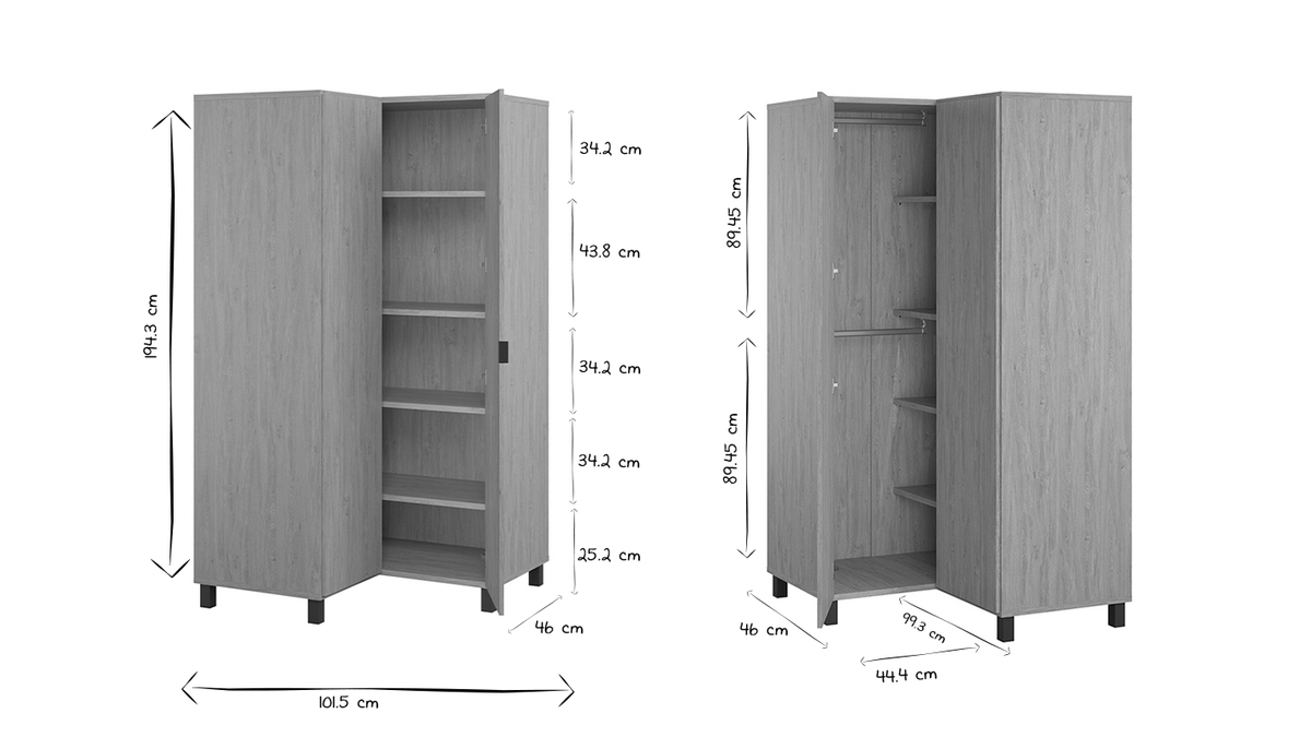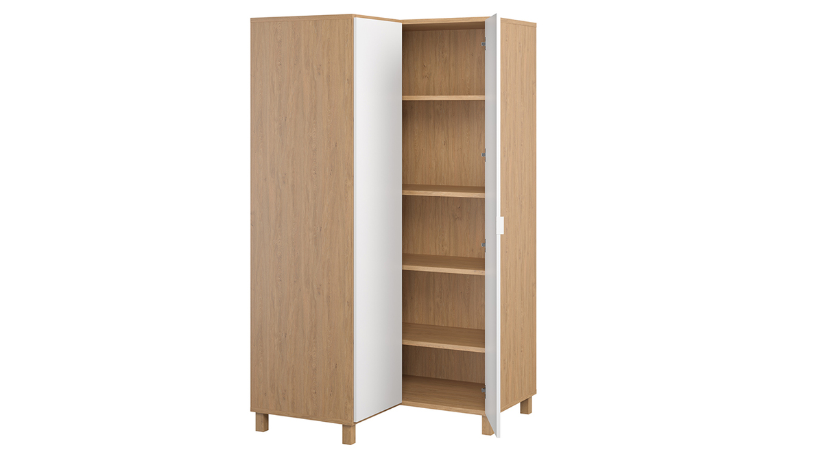 Envie d'une chambre parfaitement optimisée ? L'armoire d'angle ORKIS sera votre meilleure alliée. Spécialement conçue pour meubler un angle inutilisé, elle permet véritablement de désencombrer l'espace au sol.