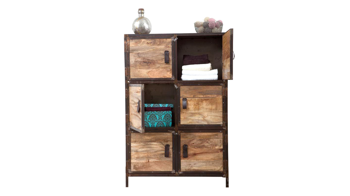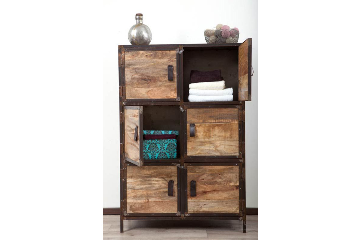 Authenticité et robustesse pour ce meuble de rangement INDUSTRIA véritable atout charme d'un intérieur industriel ! En manguier massif brut et acier, il comprend six espaces de rangements fermés aux dimensions généreuses qui permettront de stocker linge et vêtements en toute simplicité.
