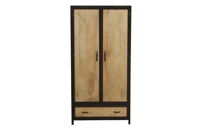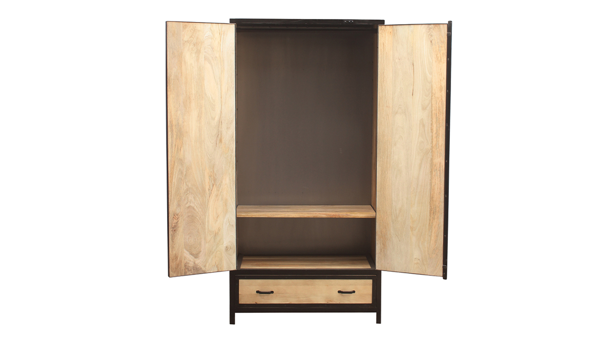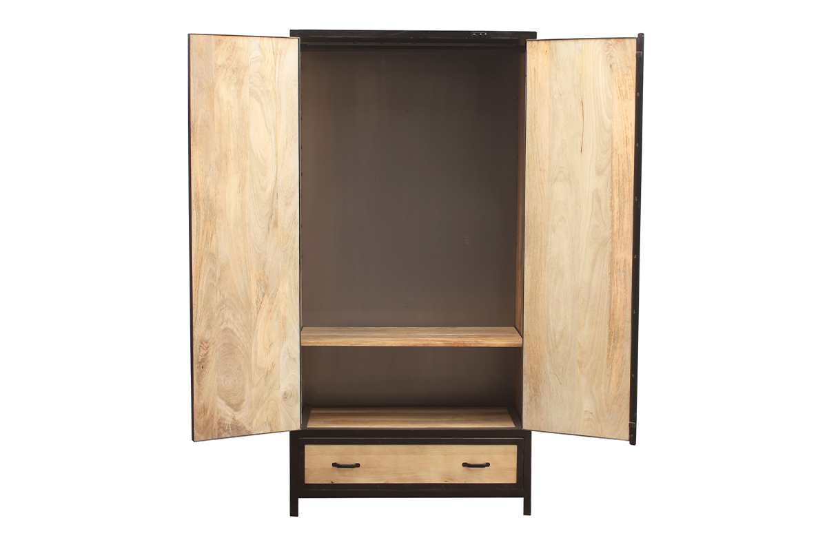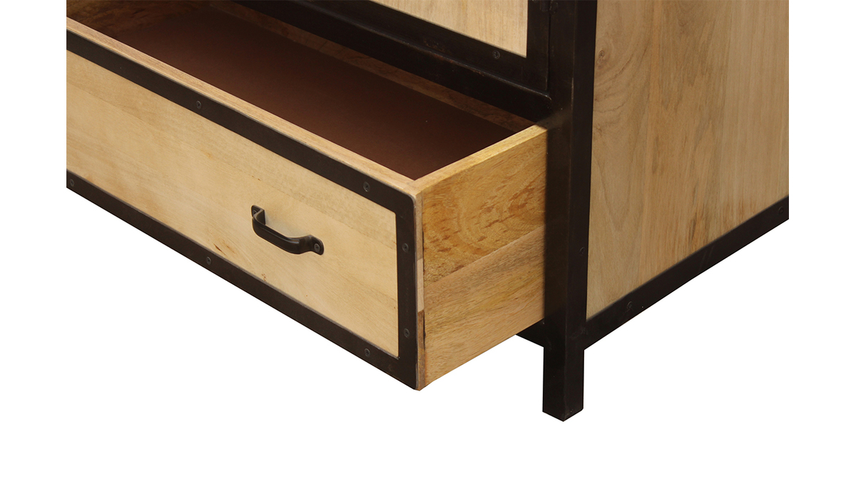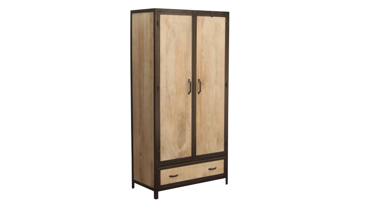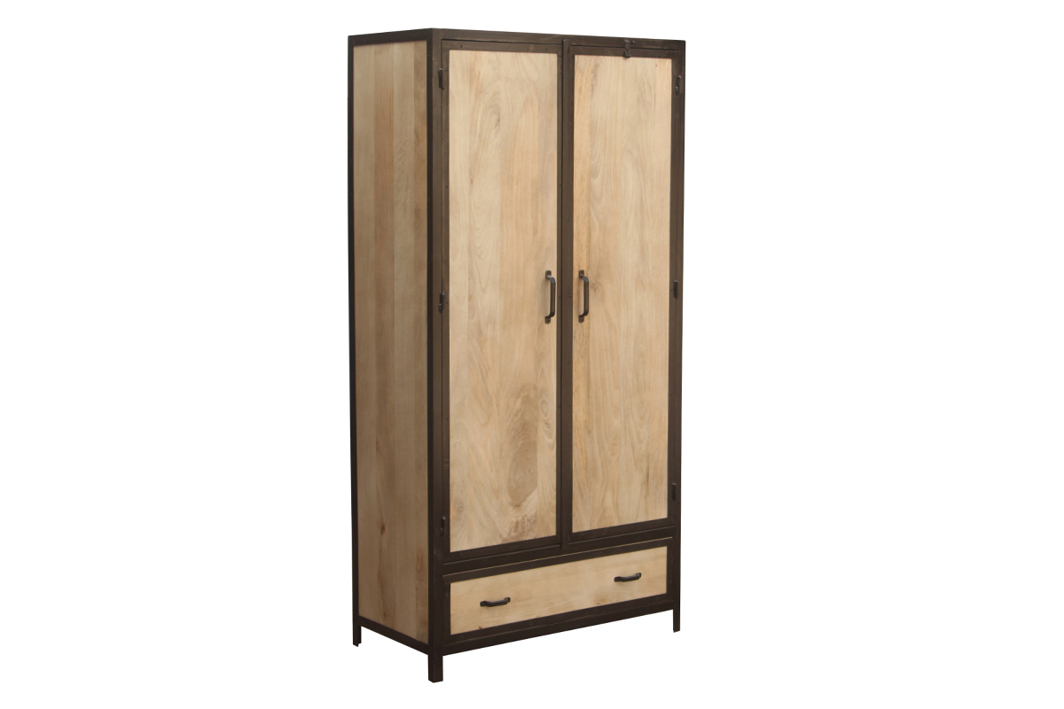 Structure en manguier massif associée à ses contours et poignées en acier brut, cette armoire est idéalement représentative du style industriel. Patines et marques d'usures, elle bénéficie de finitions travaillées artisanalement. Unique, cette armoire apportera de la chaleur à votre intérieur.