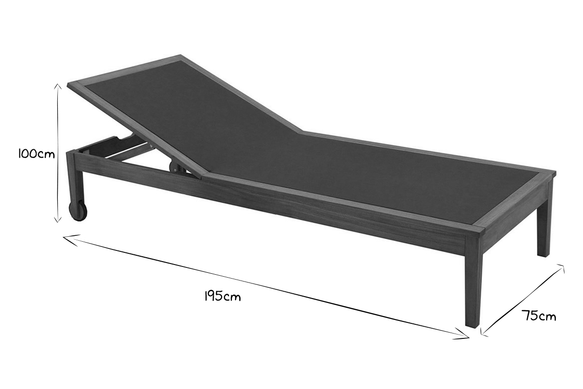 Dimensions totales : L195 x P75 x H35-100 cm