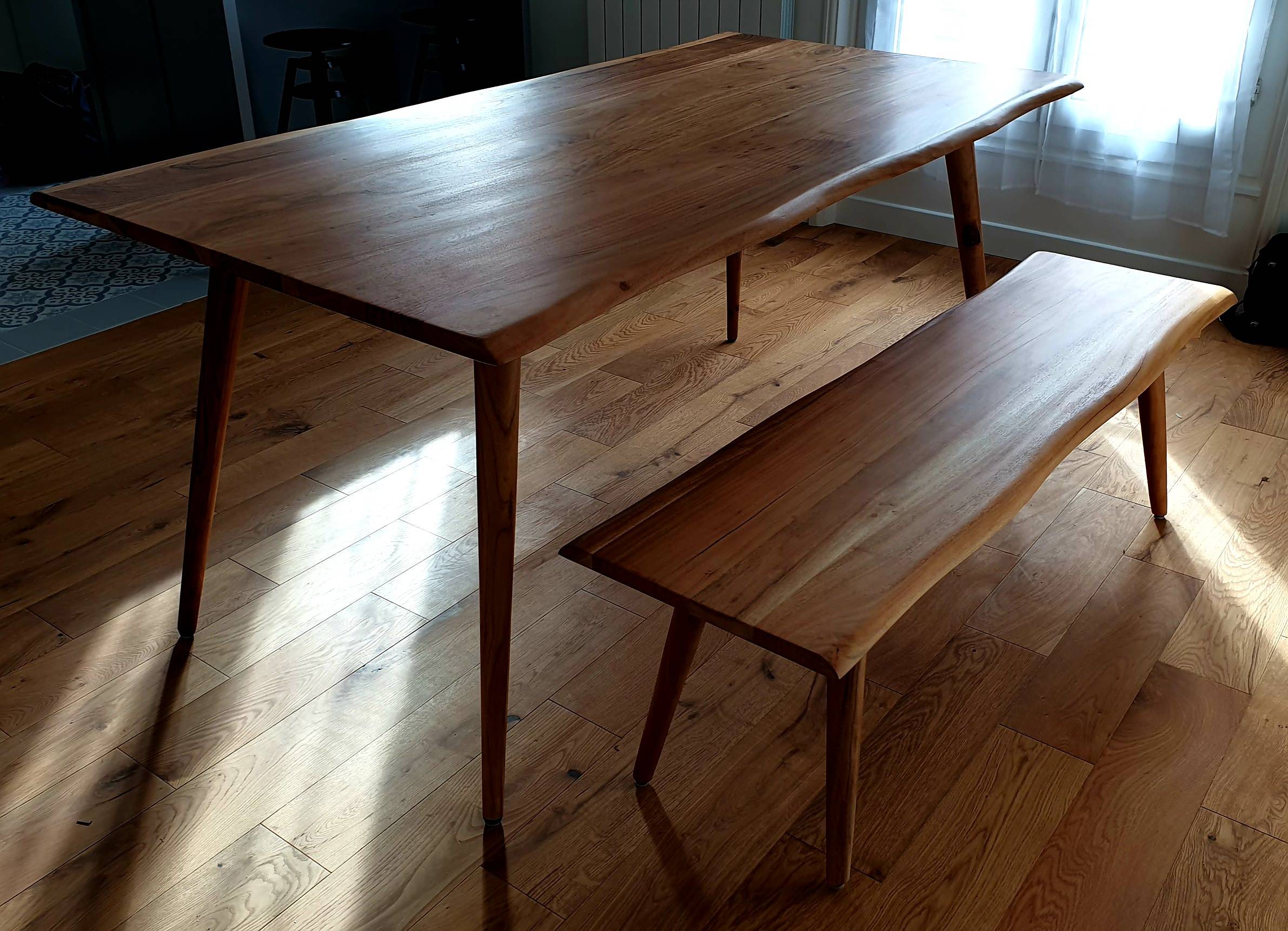 Banc en bois massif L145 cm SAVANA livré prêt à monter. Montage simple, seule le piètement est à fixer.