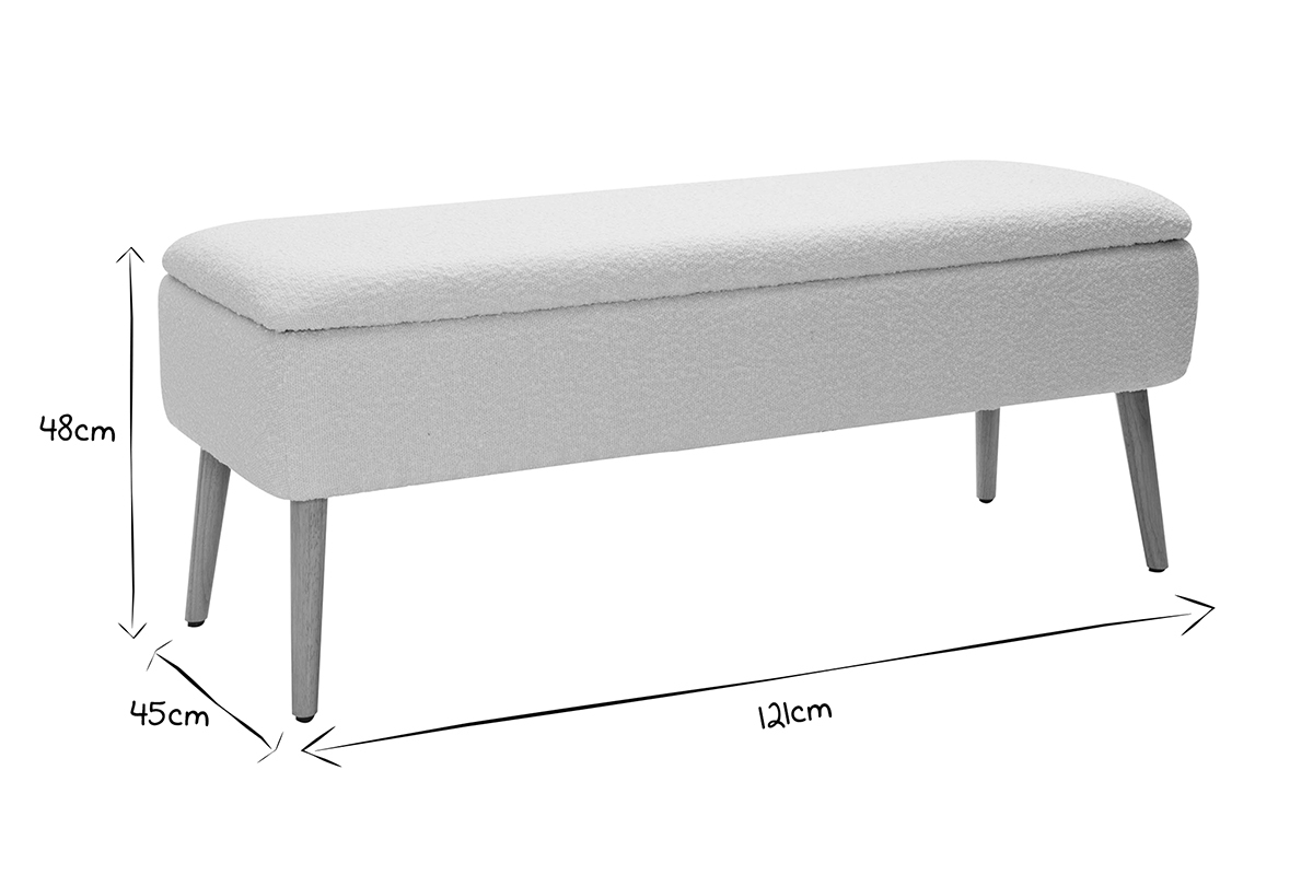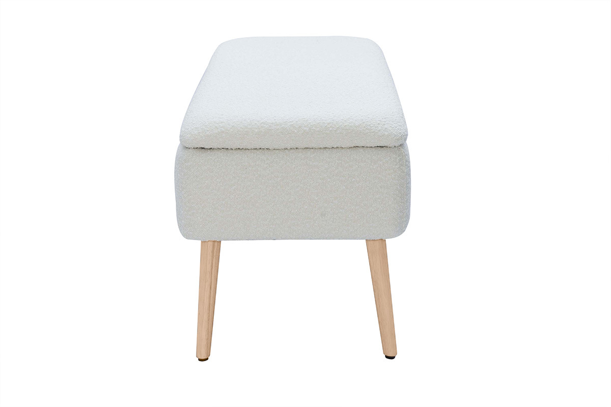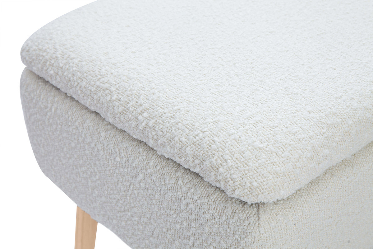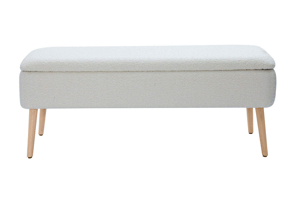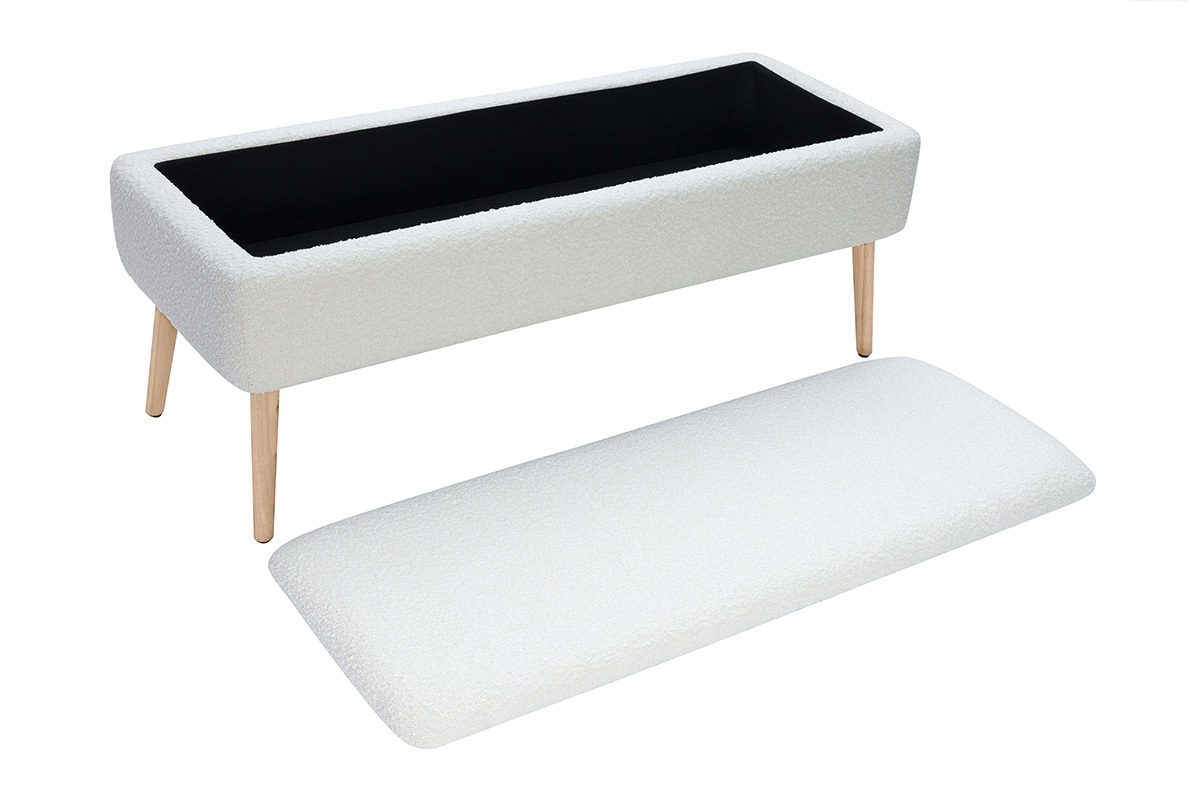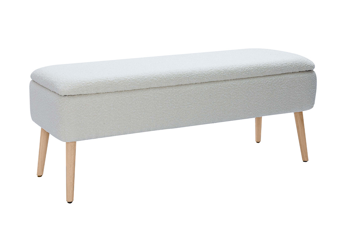 Banc coffre effet laine bouclée blanc et bois clair massif L120 cm LARS