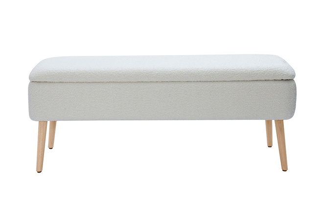 Avec ses lignes simples et son esprit scandinave, ce banc coffre en tissu effet laine bouclée blanc et bois clair est un intemporel facile à intégrer chez soi. Mélange harmonieux entre une assise revêtue de tissu polyester et nylon et un piètement en bois massif, il offre un rendu chaleureux. On imagine ce banc d'intérieur blanc aussi bien en bout de lit qu'en banc d'entrée ou en assise d'appoint dans un petit salon. C'est une pièce de mobilier polyvalente dont le design épuré s'adapte à tous les styles déco.