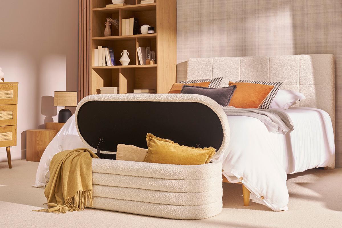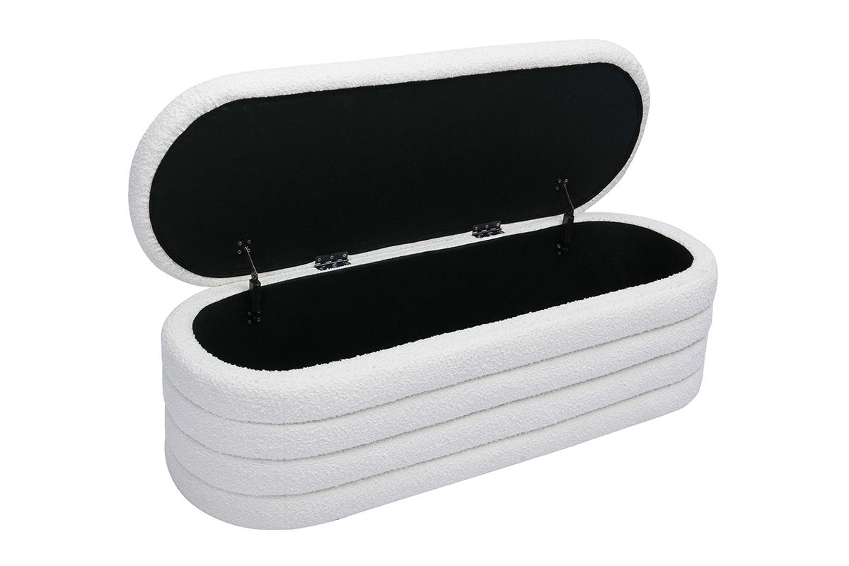 Banc coffre en tissu effet laine bouclée blanc L125 cm NAVY
