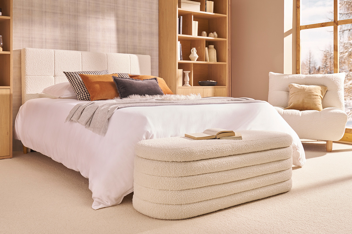 Le design épuré du banc NAVY, combiné à l'effet laine bouclée, lui confère un aspect à la fois moderne et intemporel. Le choix de la laine bouclée ajoute une dimension tactile agréable, renforçant son côté cosy et accueillant. De plus, sa teinte claire et naturelle s'harmonise aisément avec une palette de couleurs neutres ou plus vives, apportant ainsi une ambiance apaisante et chic.