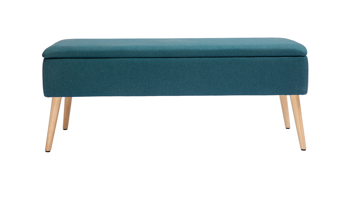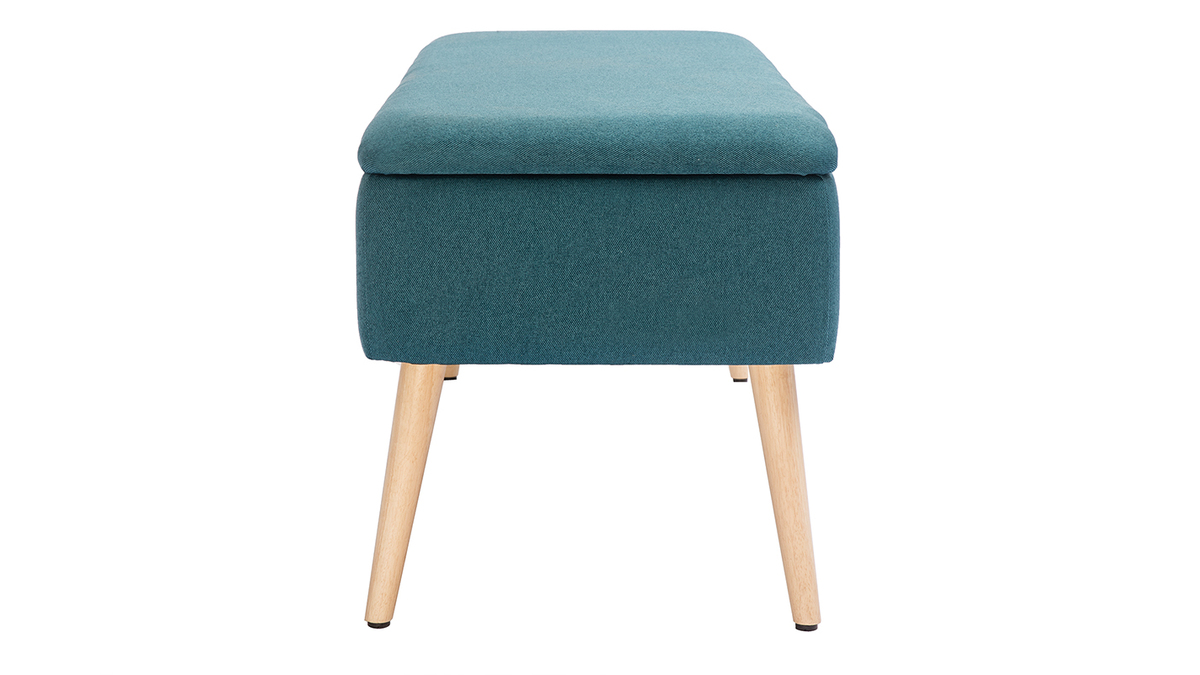 Banc coffre en tissu bleu canard et bois clair L120 cm LARS