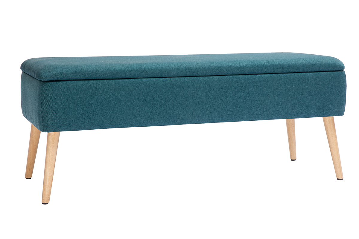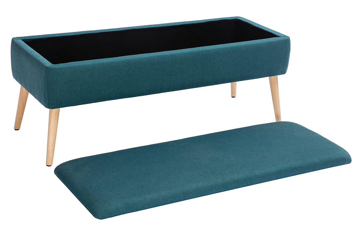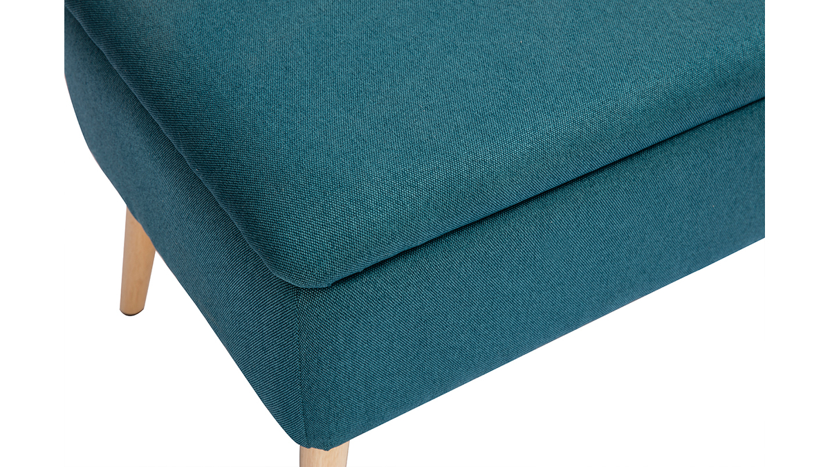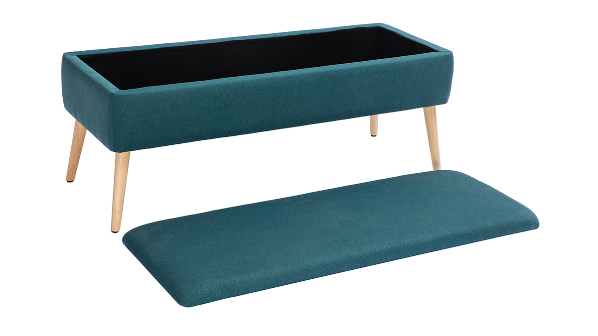 Banc coffre en tissu bleu canard et bois clair L120 cm LARS (Ce produit n'est plus commercialisé)