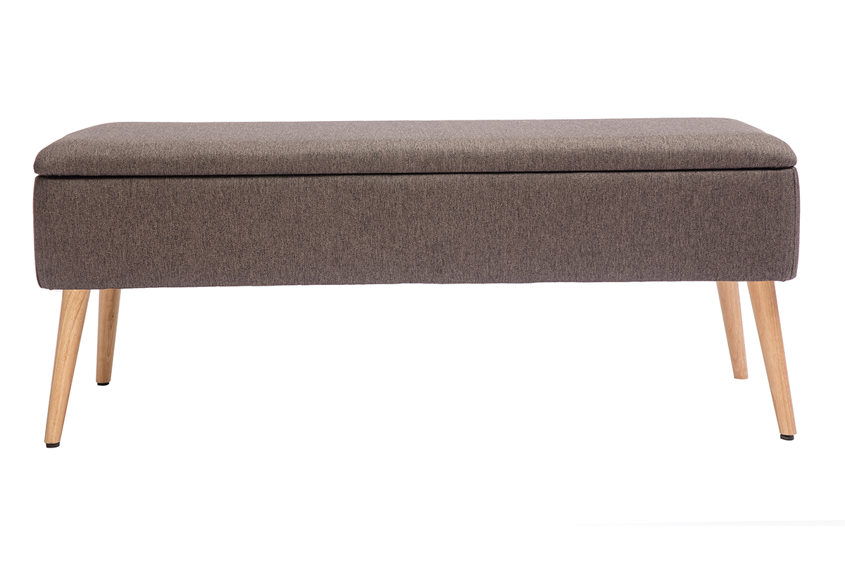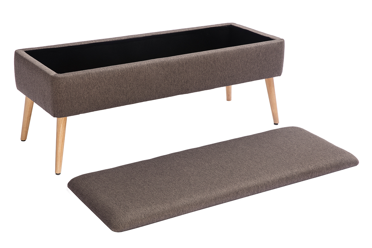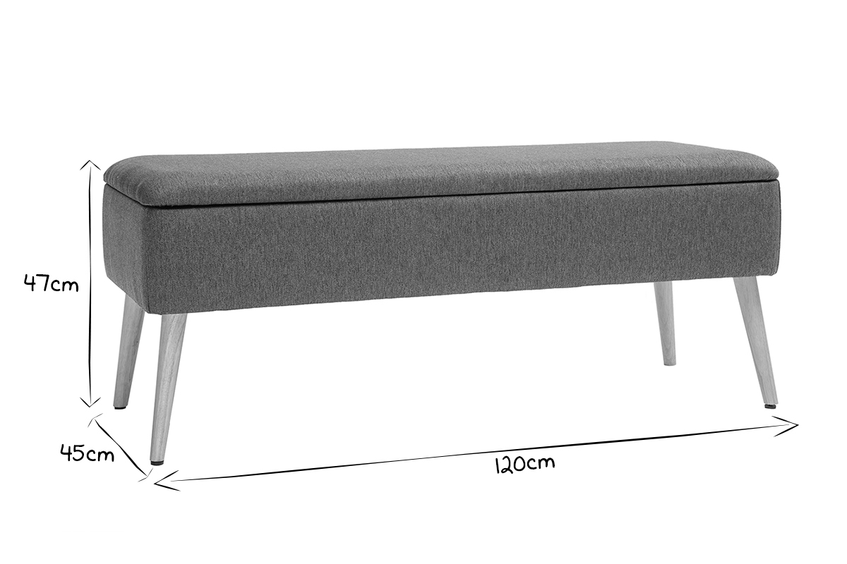 Avec ses lignes simples et son esprit scandinave, ce banc coffre en tissu gris foncé et bois clair est un intemporel facile à intégrer chez soi. Mélange harmonieux entre une assise revêtue de tissu 100 % polyester et un piètement en bois massif, il offre un rendu chaleureux. On imagine ce banc d'intérieur en tissu gris foncé aussi bien en bout de lit qu'en banc d'entrée ou en assise d'appoint dans un petit salon. C'est une pièce de mobilier polyvalente dont le design épuré s'adapte à tous les styles déco.