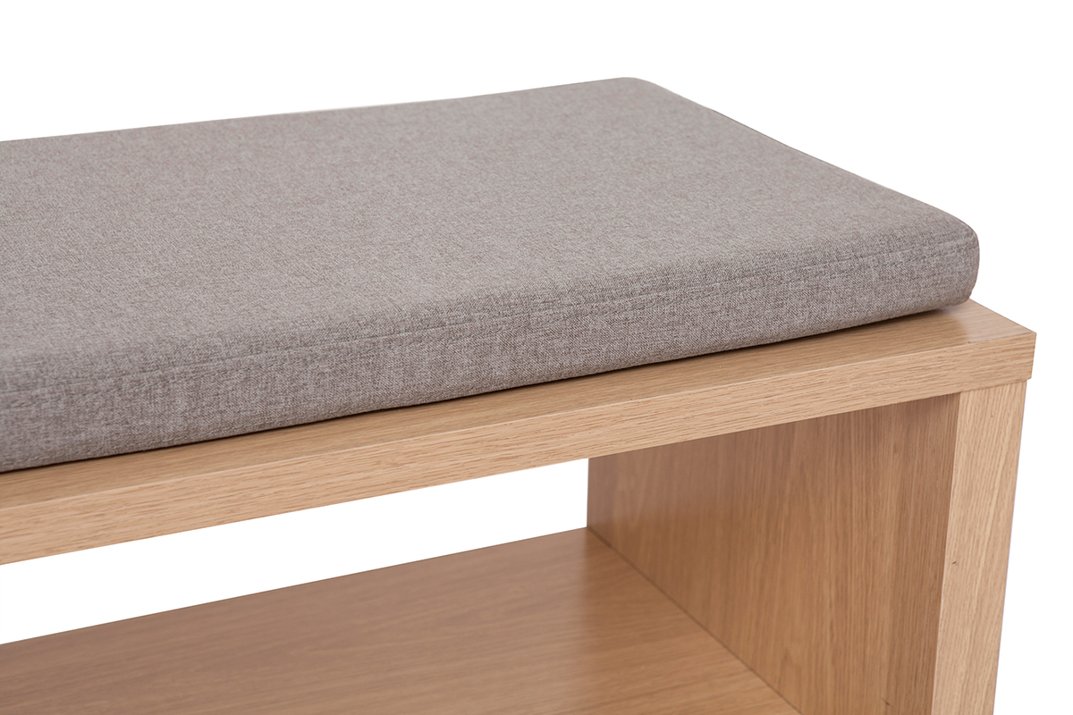 Must-have d'une hall confortable et organisé, ce petit meuble de rangement bas signe un design bien pensé ! Parfait pour accueillir des chaussures, l'espace de rangement ouvert (L63.5 x P38.8 x H24.7 cm) est complété par une niche ouverte latérale (L31-35.2 x P30 x H24.5 cm) où vous pourrez déposer des accessoires comme un bonnet, des gants ou une écharpe. Le banc est agrémenté d'un coussin plat format banquette (L64 x P35 x E4.5 cm) pour vous assurer une assise agréable et moelleuse. Fonctionnel et gain de place, ce banc d'entrée au petit gabarit (L100 x P40 x H43.5 cm) sera idéal pour habiller avec douceur une pièce accueillante et ordonnée.