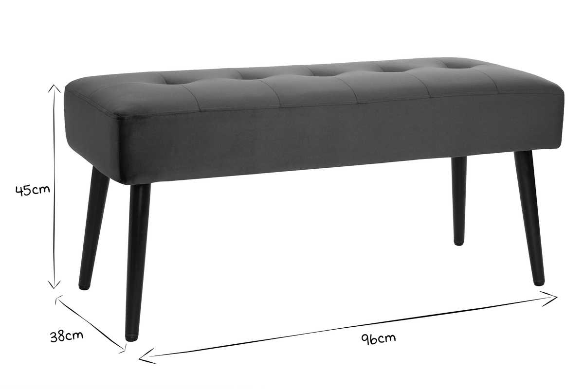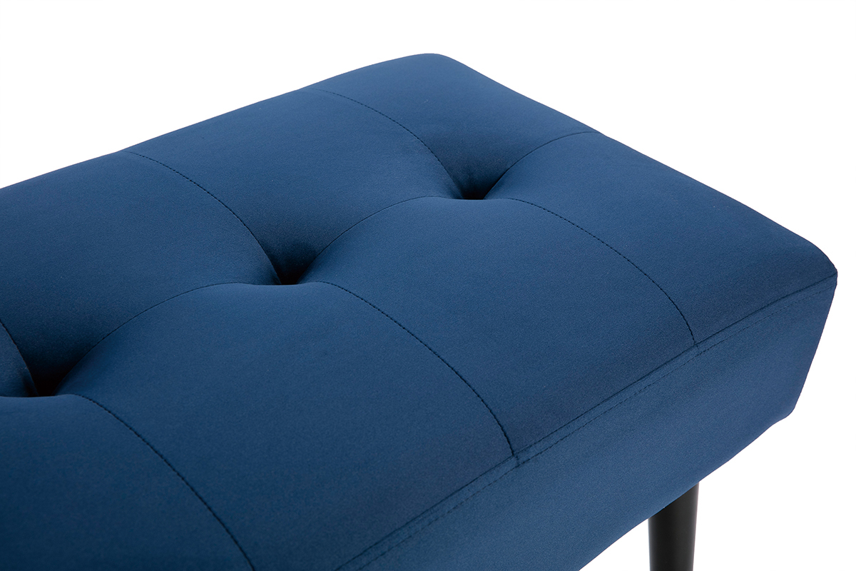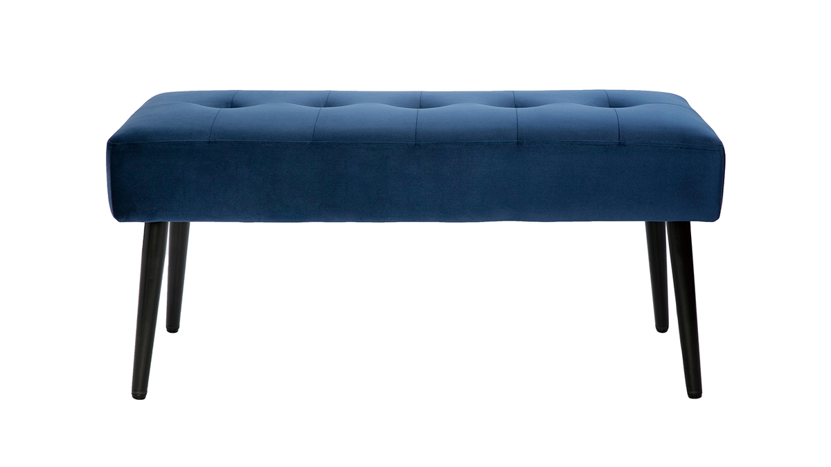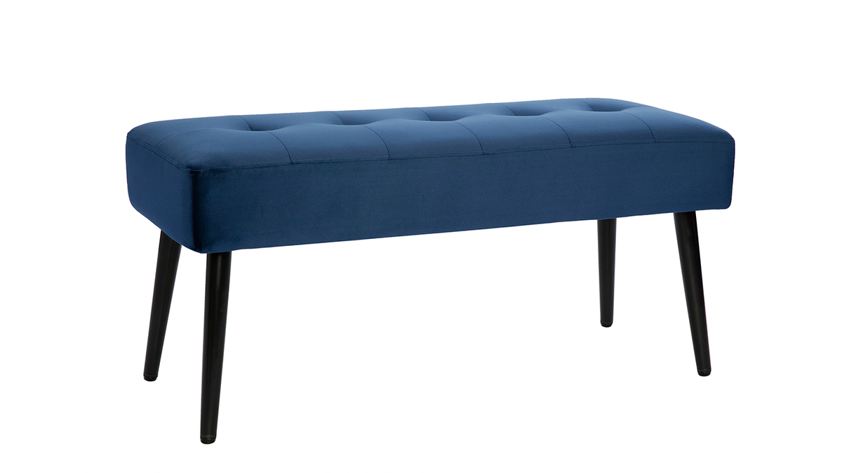Ce banc se distingue par son tissu velours d'une grande douceur, son coloris intense ainsi que son capitonnage... Chicissime ! La confortable assise est dotée d'un épais rembourrage en mousse polyuréthane (densité 25 kg/m3). Avec son style délicieusement fifties, le piètement fuselé en métal noir apporte beaucoup de légèreté.