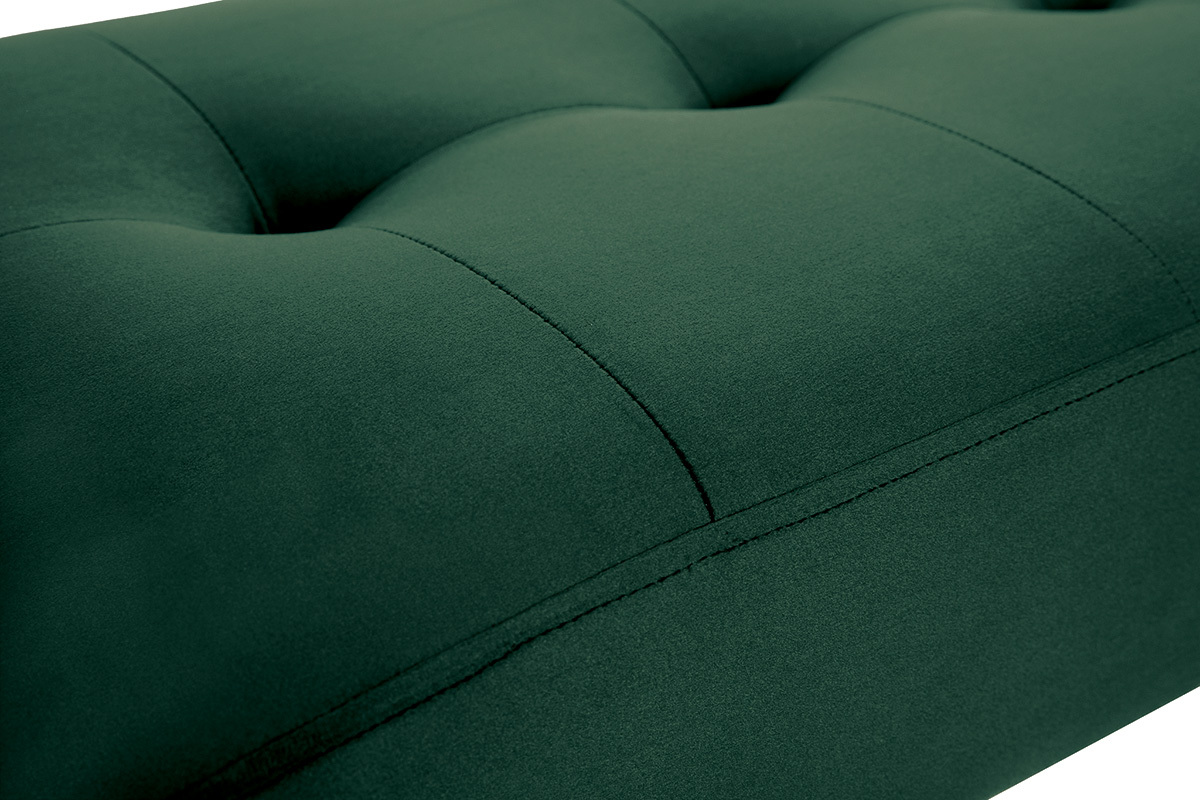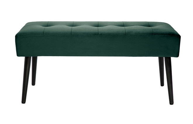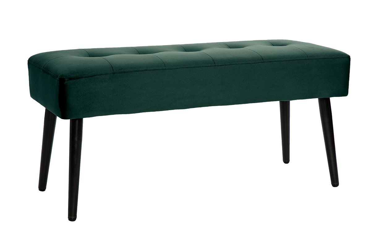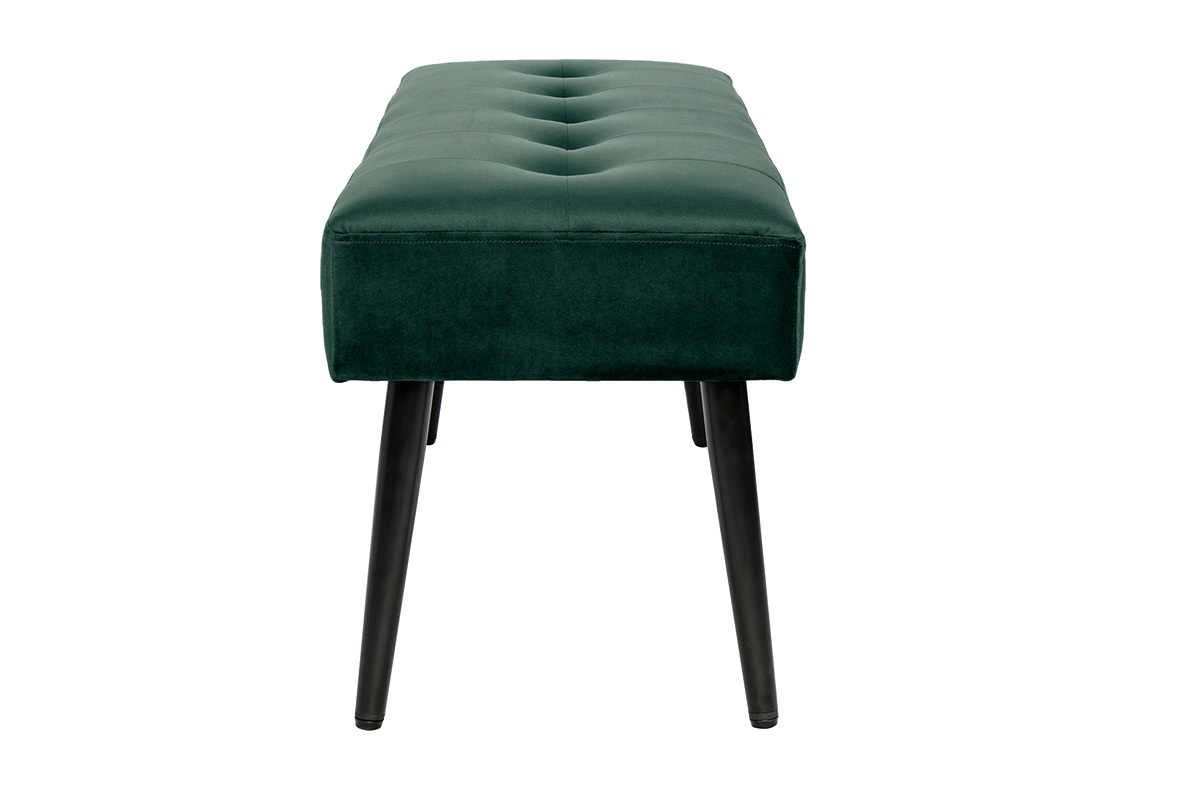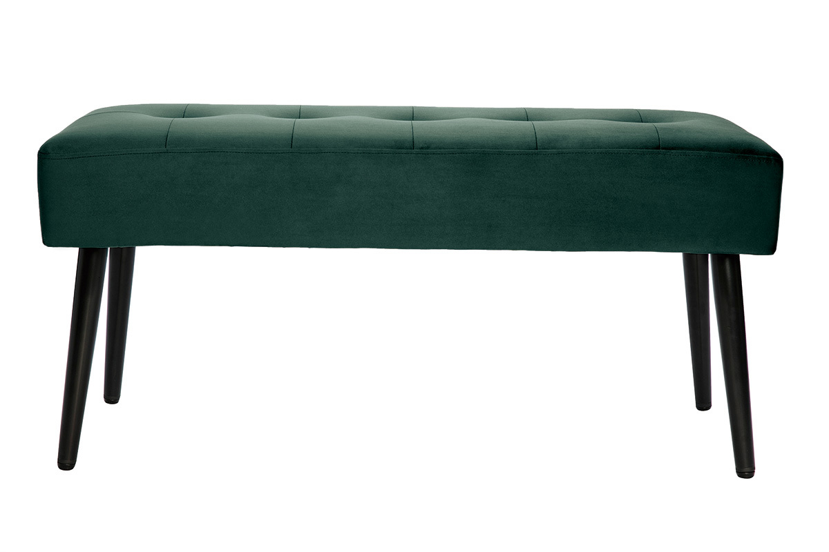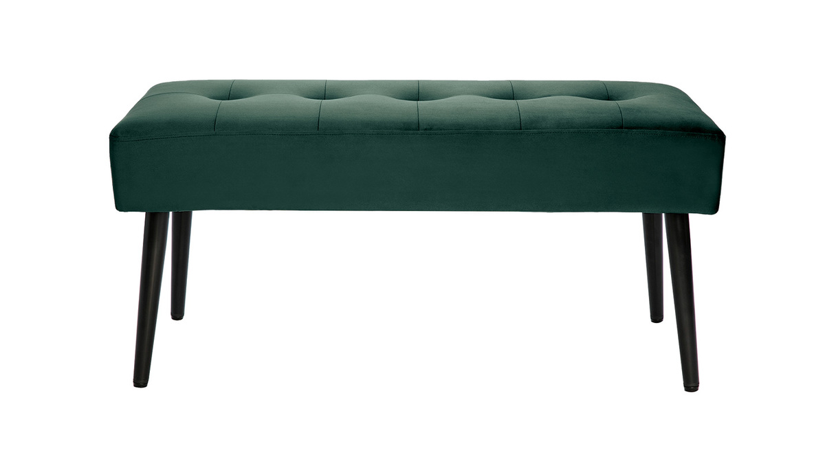 Ce banc se distingue par son tissu velours d'une grande douceur, son coloris intense ainsi que son capitonnage... Chicissime ! La confortable assise est dotée d'un épais rembourrage en mousse polyuréthane (densité 25 kg/m3). Avec son style délicieusement fifties, le piètement fuselé en métal noir apporte beaucoup de légèreté.