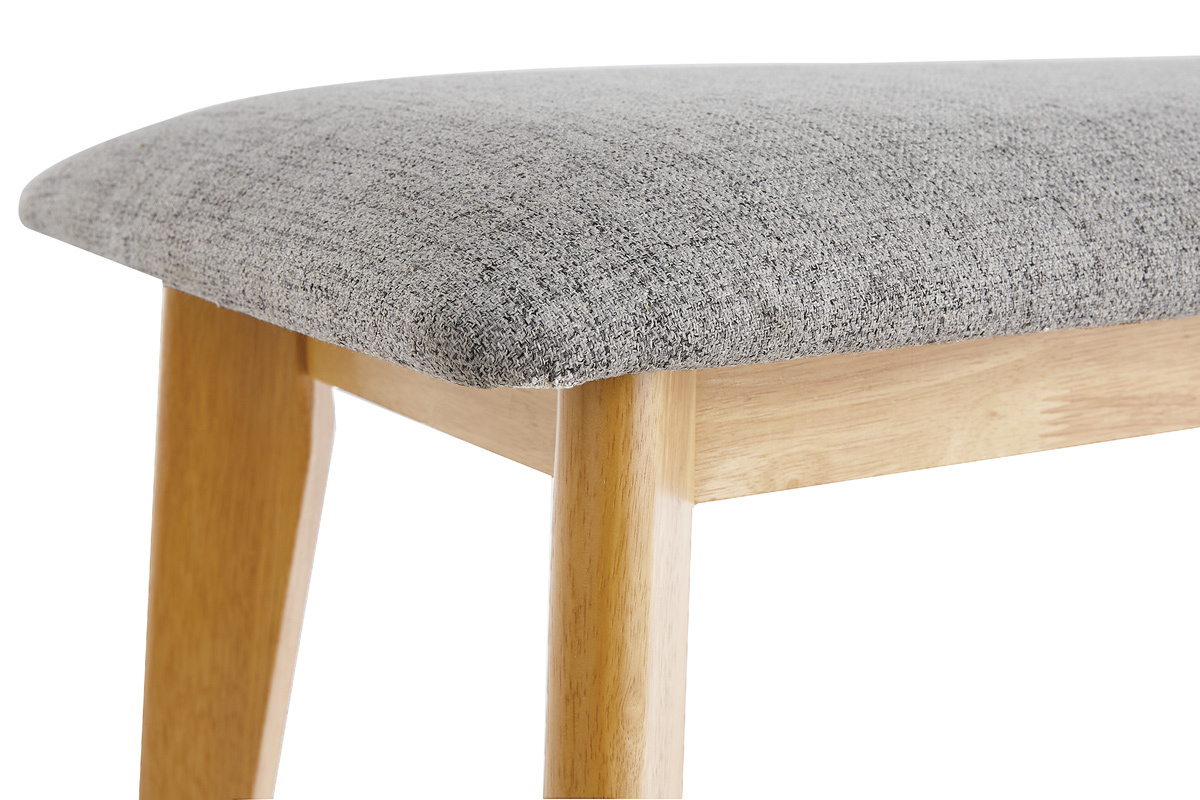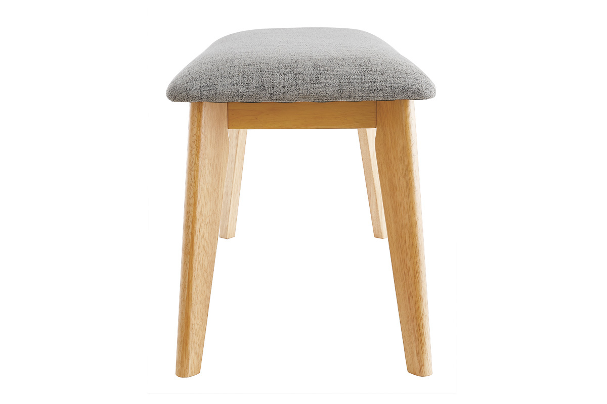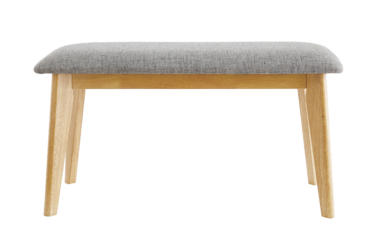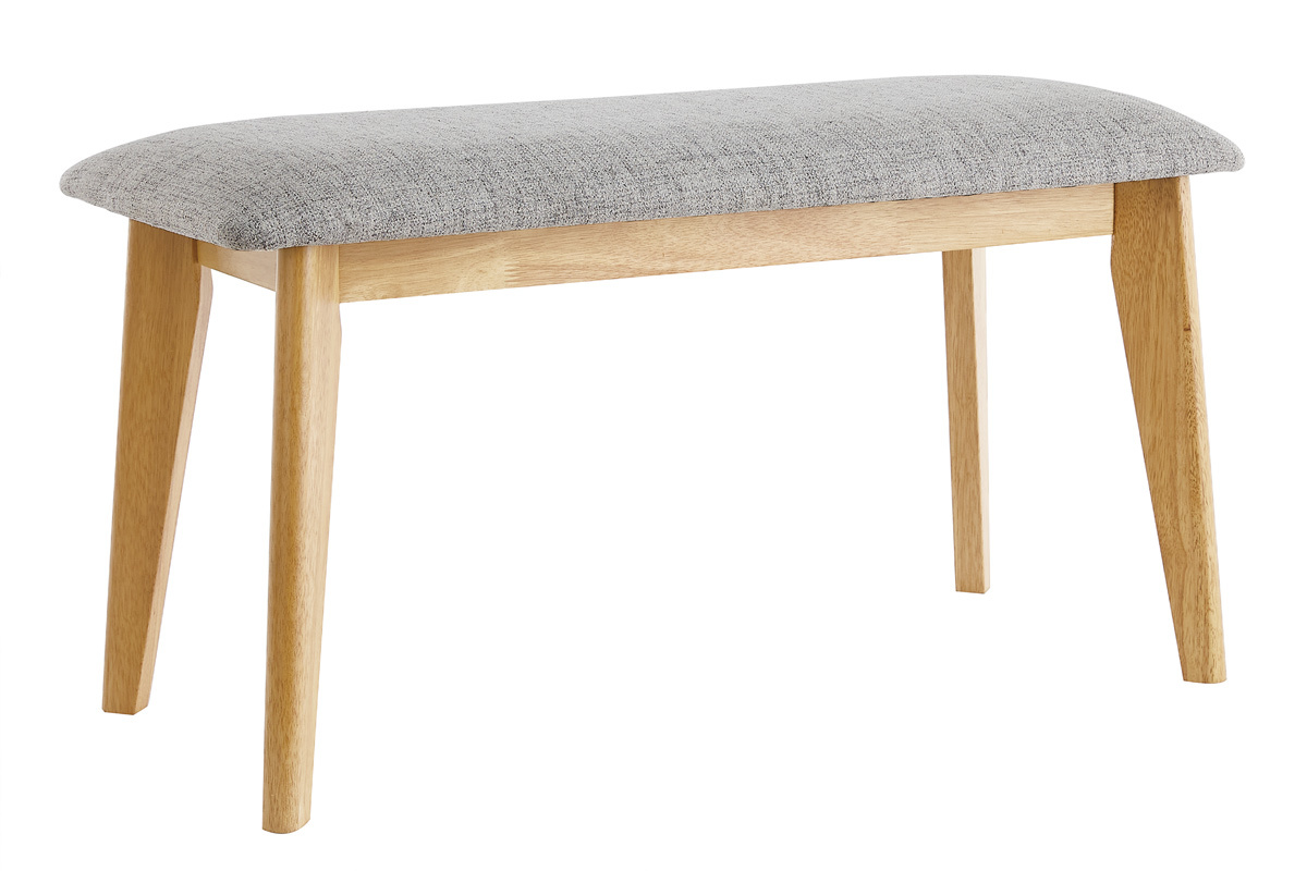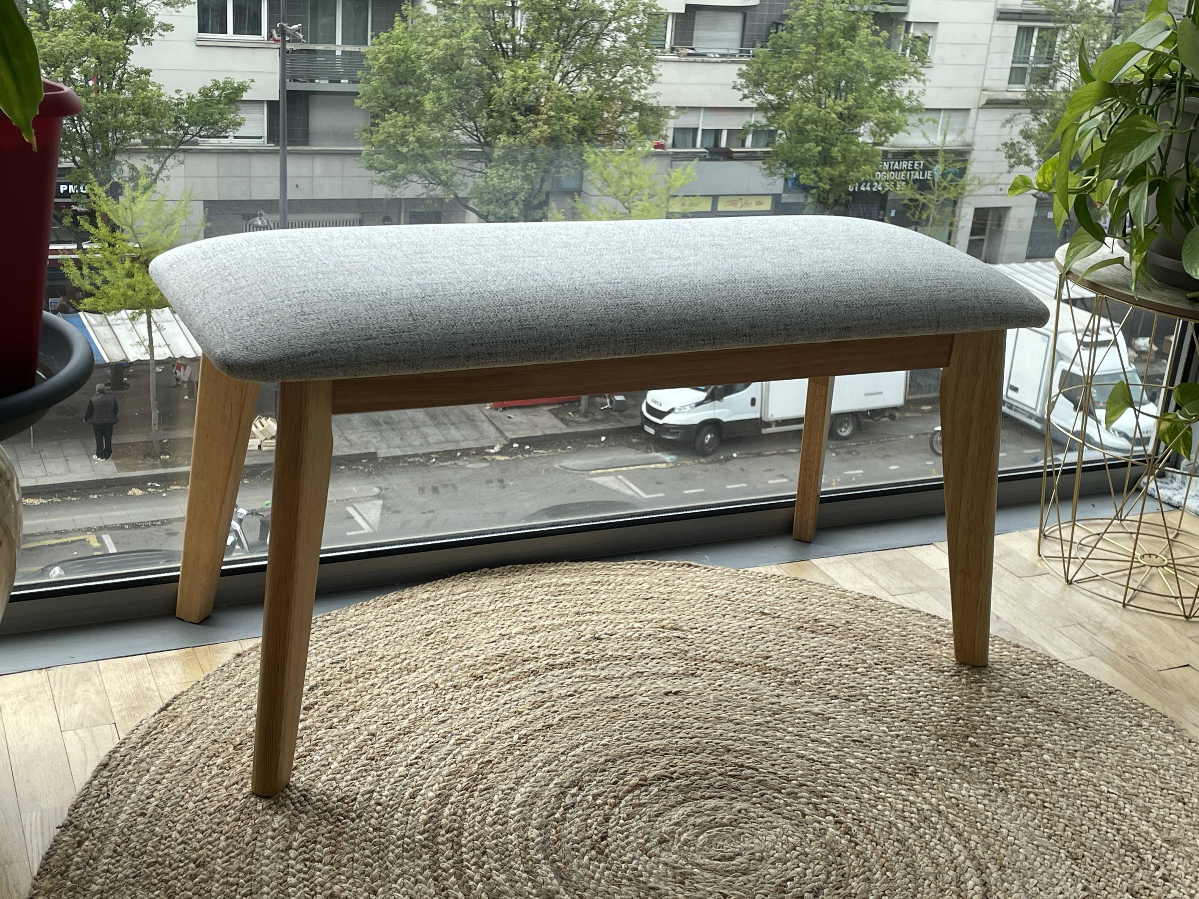 Inspiré du design scandinave des années 50, ce banc d'intérieur gris et bois conjugue avec harmonie des lignes épurées aux finitions arrondies, un piètement en bois clair aux doux reflets dorés et une assise habillée d'un élégant tissu gris clair. Une silhouette apaisante et un brin rétro appréciée des intérieurs cosy.