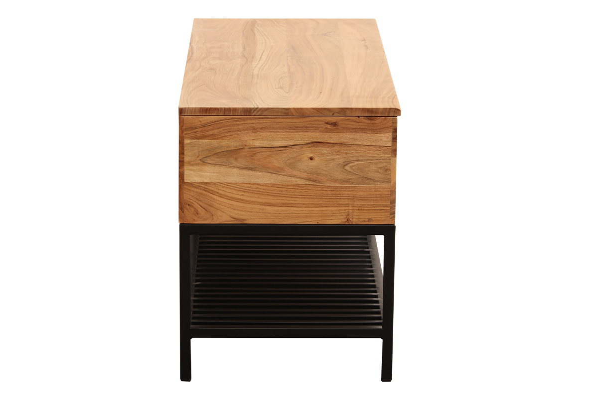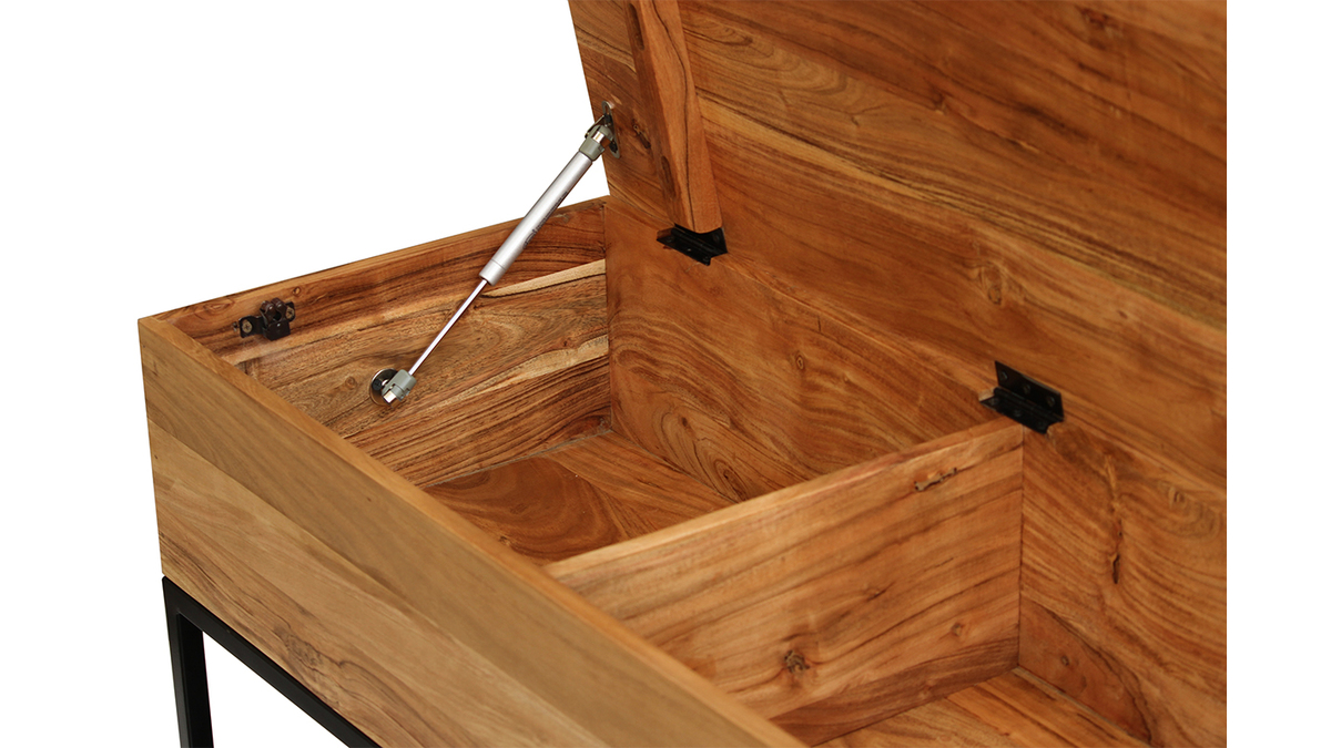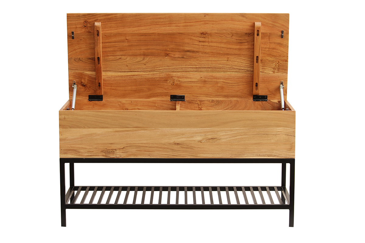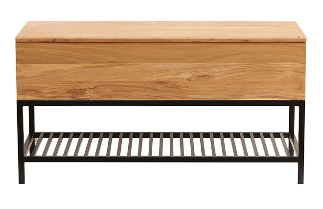 Le banc d'entrée SORG s'inscrit dans la grande tendance du style industriel. Ce meuble de caractère est composé d'un grand coffre banquette (L100 x L40 x H52 cm) en acacia massif.