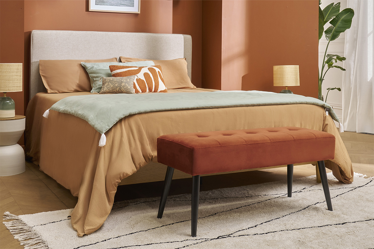 Tout est possible avec le banc d'intérieur GUESTA. Vous souhaitez habiller un coin perdu de votre pièce de vie ? Placez au-dessus du banc de jolis tableaux/cadres photos, ajoutez quelques coussins, une liseuse, un petit tapis... et le tour est joué ! Vous souhaitez donner du cachet à votre entrée ? Imaginez un jeu de patères ou de petits miroirs au-dessus de ce banc terre brûlée et glissez de jolies boîtes remplies d'accessoires (bonnets, gants...) sous l'assise. Ce banc sera également une jolie pièce à installer en bout de lit.