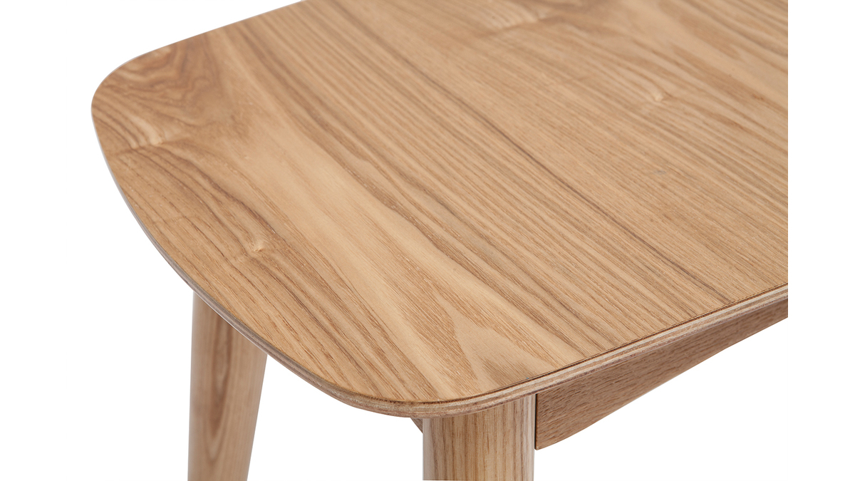 Du bois clair associé à un design pur, un brin rétro : voilà qui fait tout le charme de ce meuble ! Ce banc en bois à la ligne minimaliste et aux courbes affirmées est une pièce intemporelle qui rappelle la beauté des meubles nordiques. Avec sa structure en contreplaqué et ses pieds en frêne massif, ce banc d'intérieur comble nos envies de nature et d'authenticité. Lignes en toute simplicité et matériaux choisis en font une pièce facile à vivre. Ce banc 2 places se glisse absolument partout dans la maison. C'est l'assise conviviale par excellence autour d'une table manger et le meuble chaleureux bien pratique qu'on aime retrouver dans l'entrée. En bout de lit, il donnera à la chambre un bel esprit rétro dans la plus pure tradition scandinave.