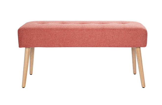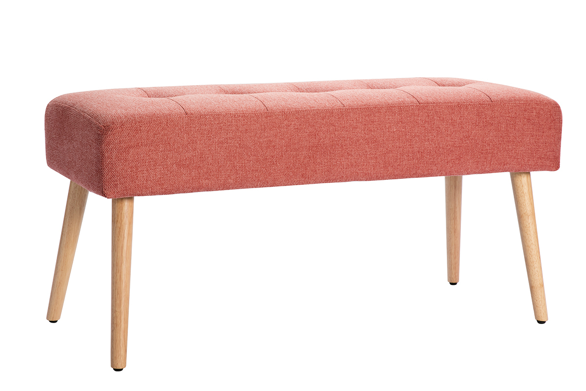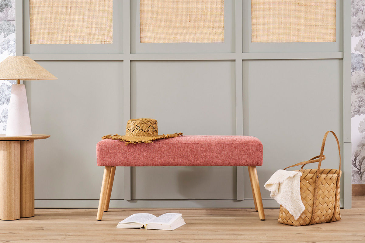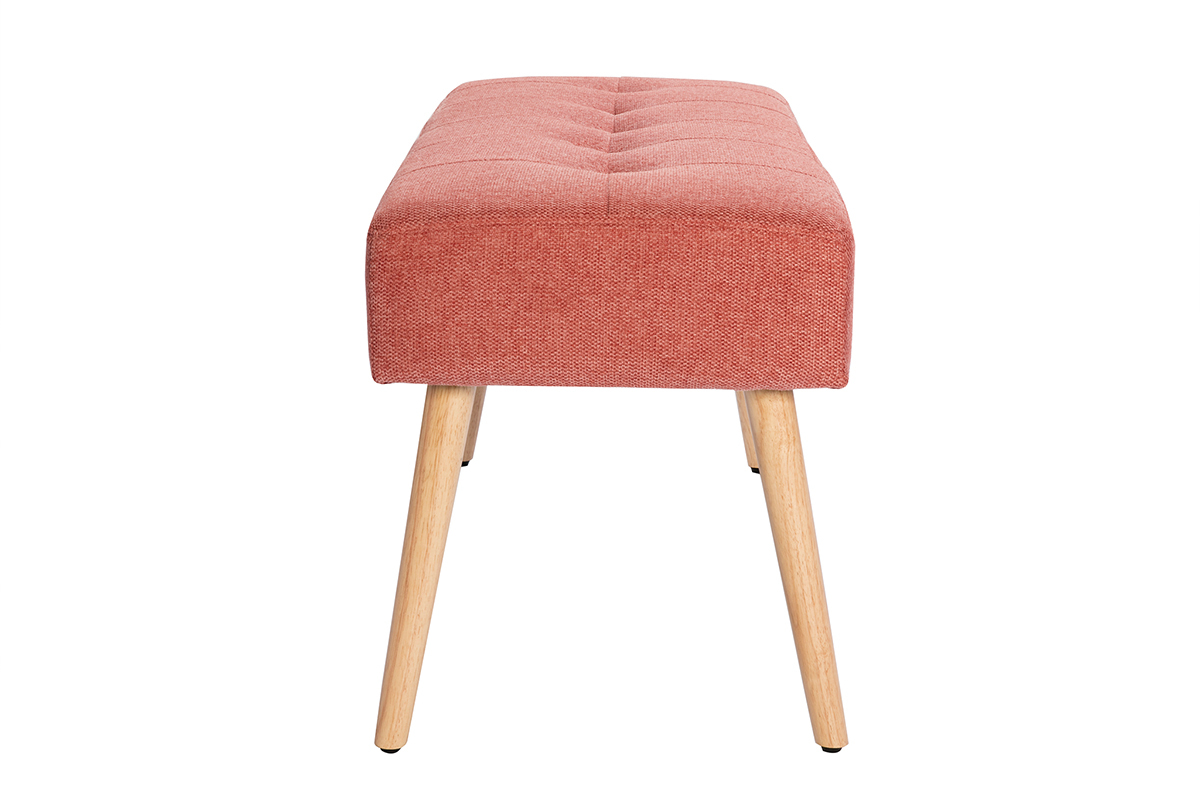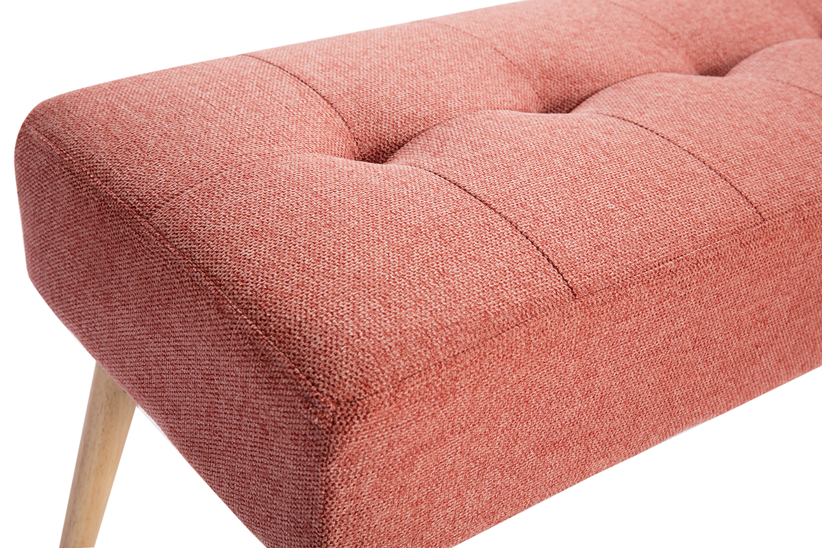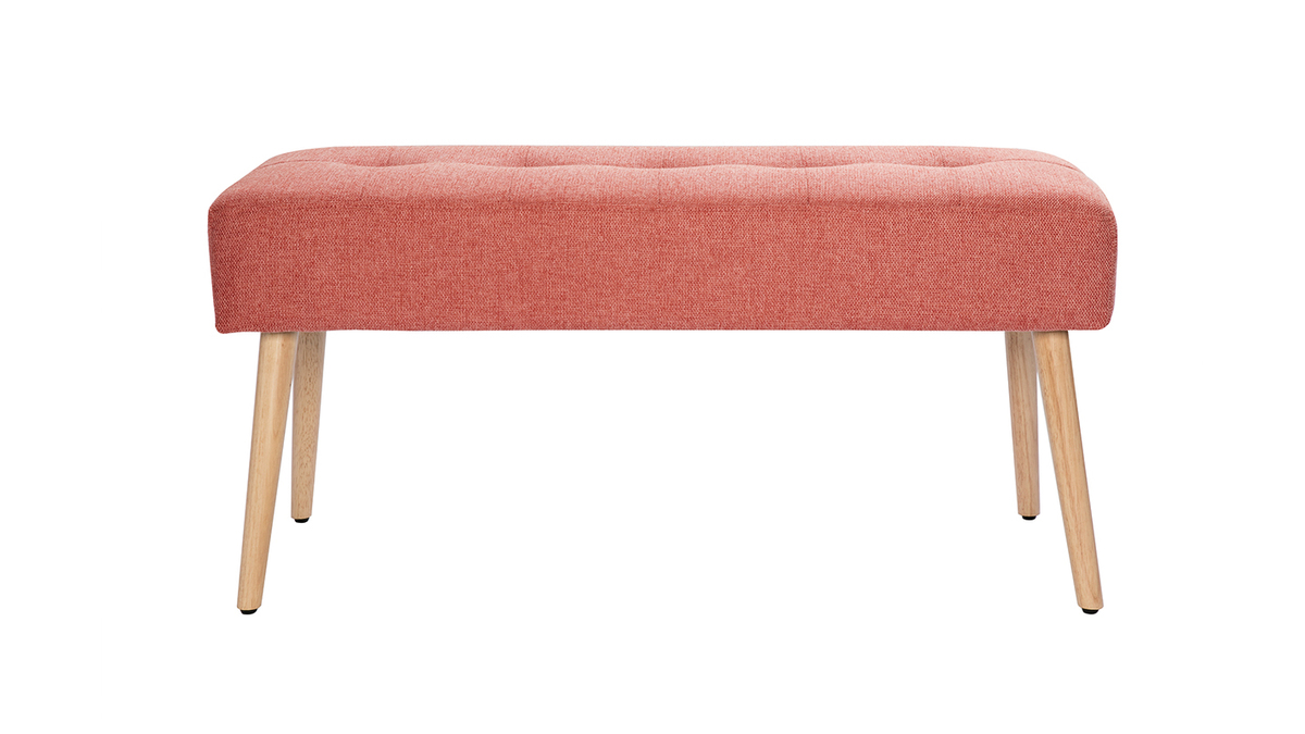 GUESTA s'approprie la couleur tendance du moment : le terracotta ! Cette banquette s'habille de cette belle teinte infiniment chaleureuse par le biais d'un doux revêtement en tissu effet velours texturé. Elle l'associe avec brio à des pieds fuselés en hévéa massif : un joli clin d'oeil à l'univers nordique.