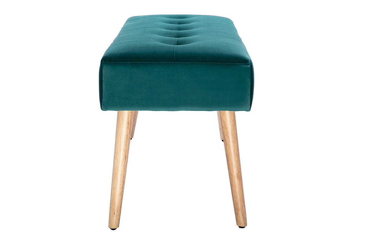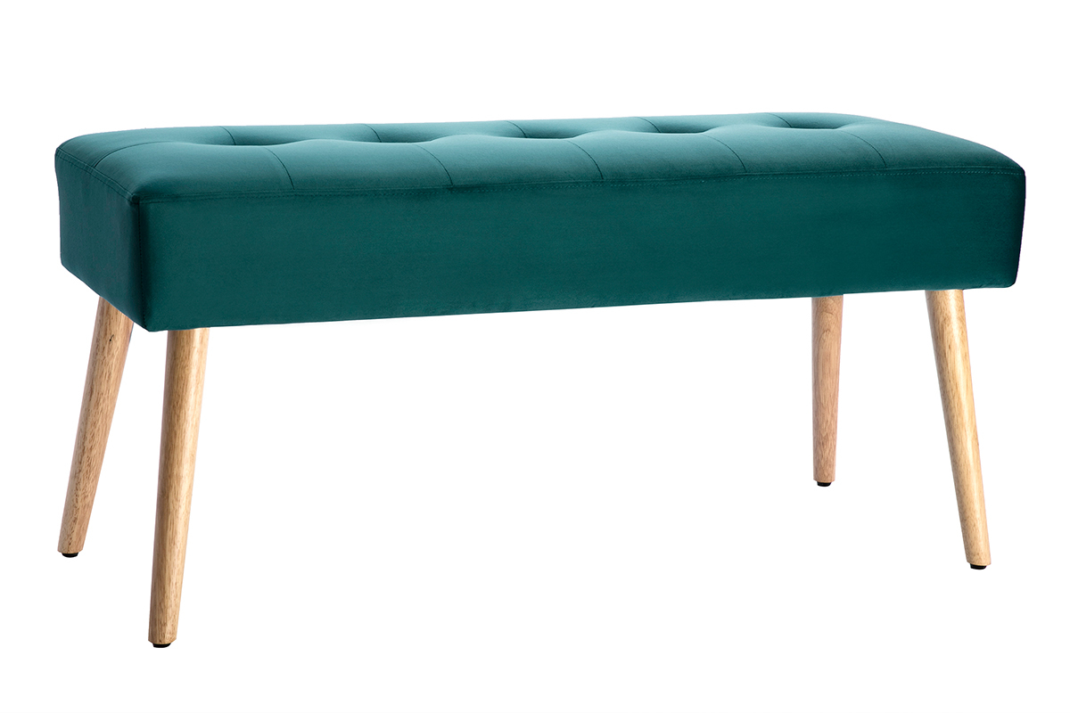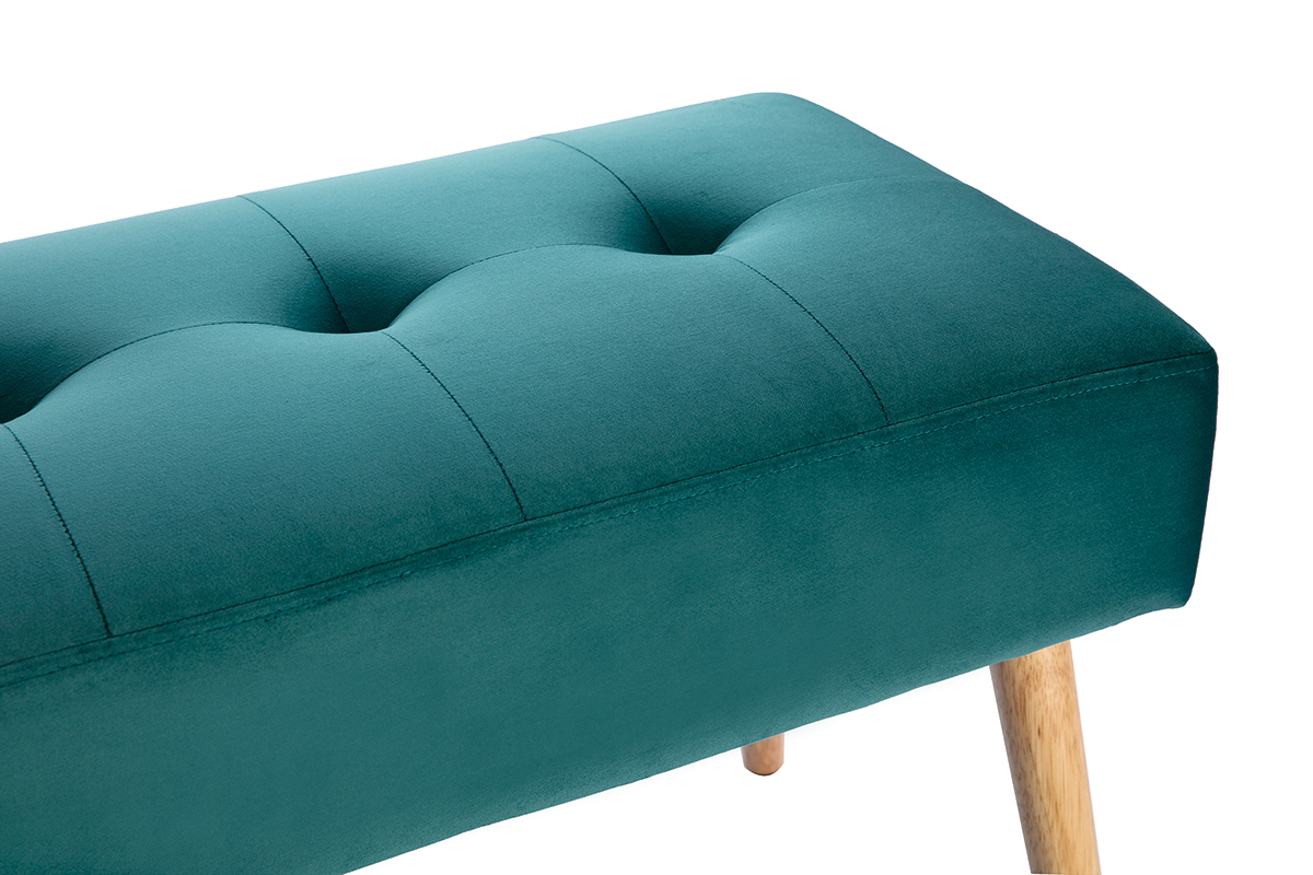 Banc scandinave capitonné en tissu velours bleu pétrole et bois clair L96 cm GUESTA