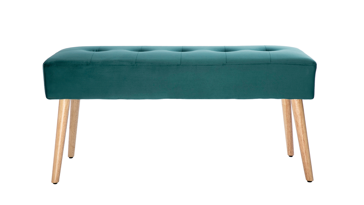 J'aime l'allure de ce banc capitonné. L'assise est ferme et agréable pour un banc d'appoint. La couleur bleu pétrole est juste magnifique.
