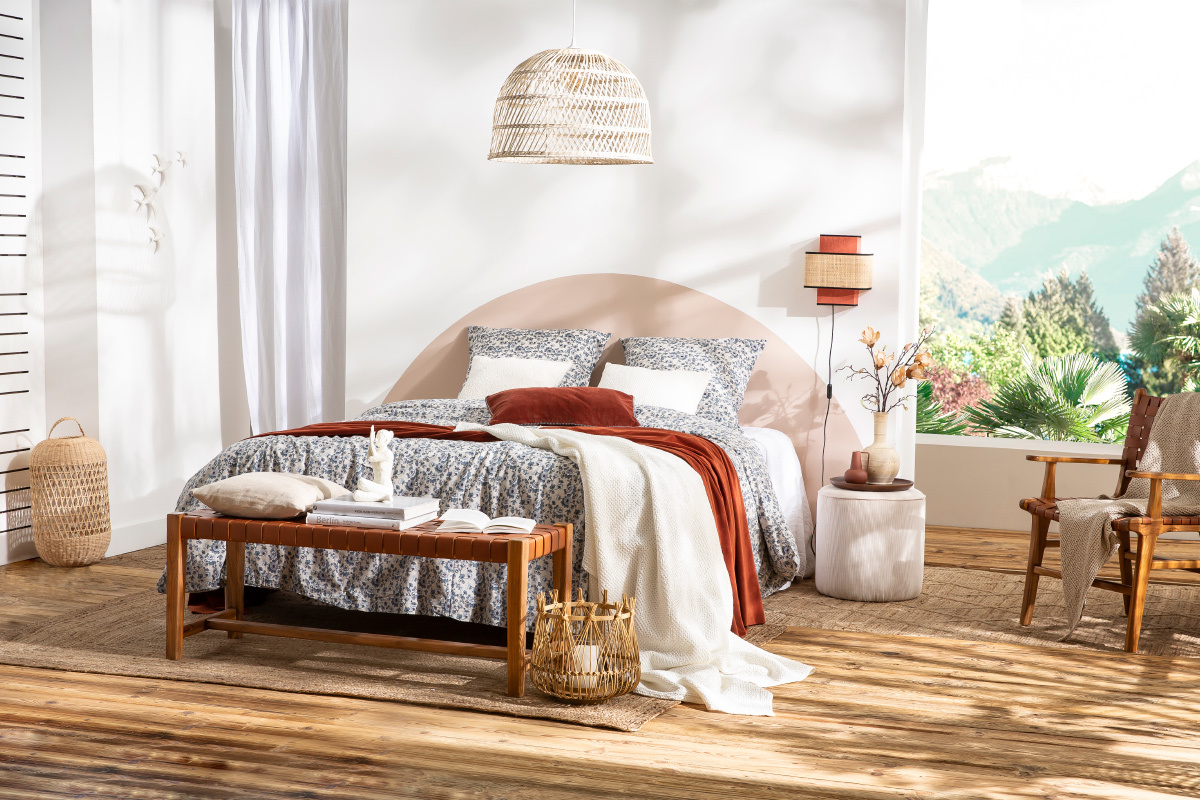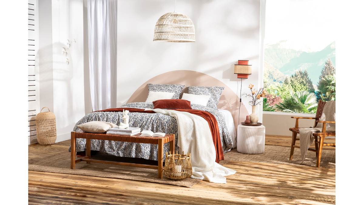 Pour être pile dans la tendance décoration d'intérieur ethnique chic, on l'associe à d'autres pièces de mobilier inspirées d'ailleurs. Un joli tapis berbère viendra apporter un supplément de caractère.