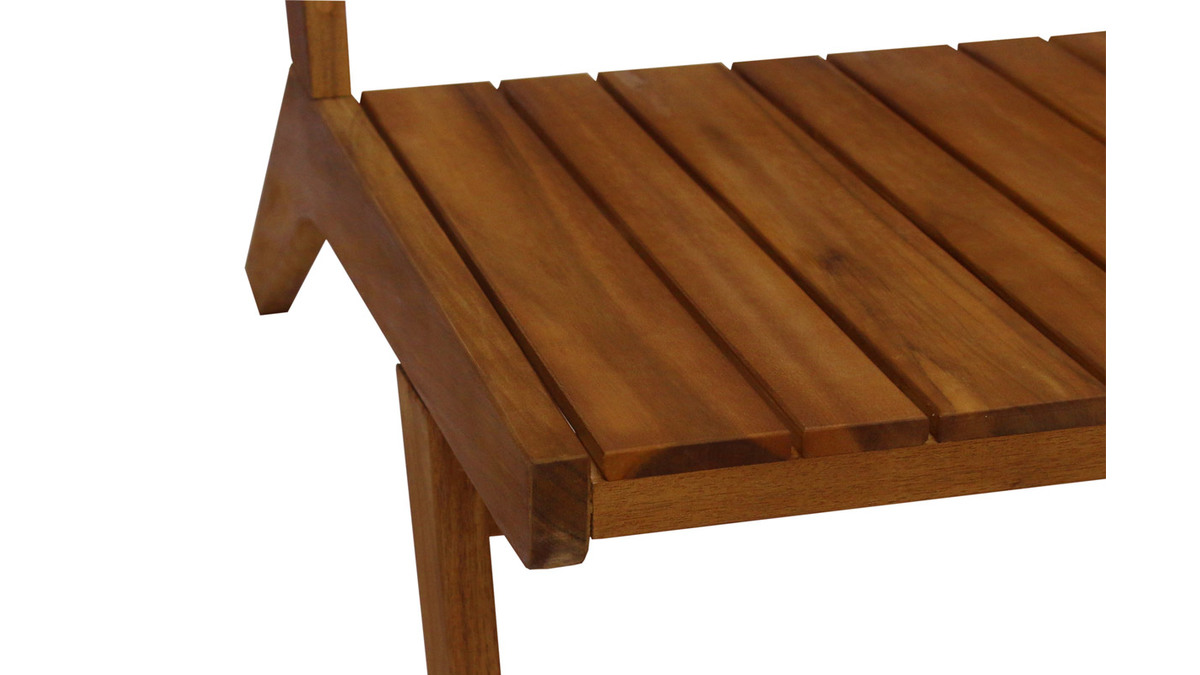 Ce banc de jardin en bois est réalisée en acacia massif, une essence exotique naturellement dure et dense et reconnaissable par ses nuances ambrées. Elle a été traitée avec une huile protectrice qui offre une résistance aux intempéries tout en laissant transparaître l'aspect naturel de sa matière.
