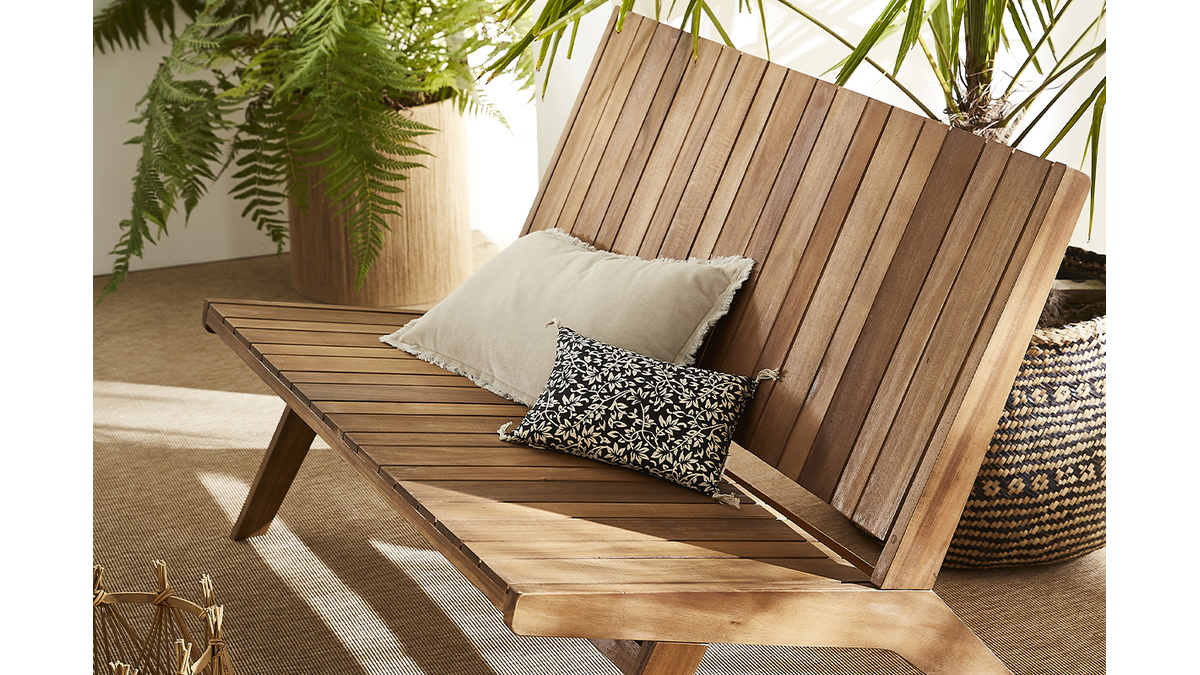 Créez un salon de jardin sur mesure en associant ce banc de jardin 2 places en bois à du mobilier d'extérieur assorti.