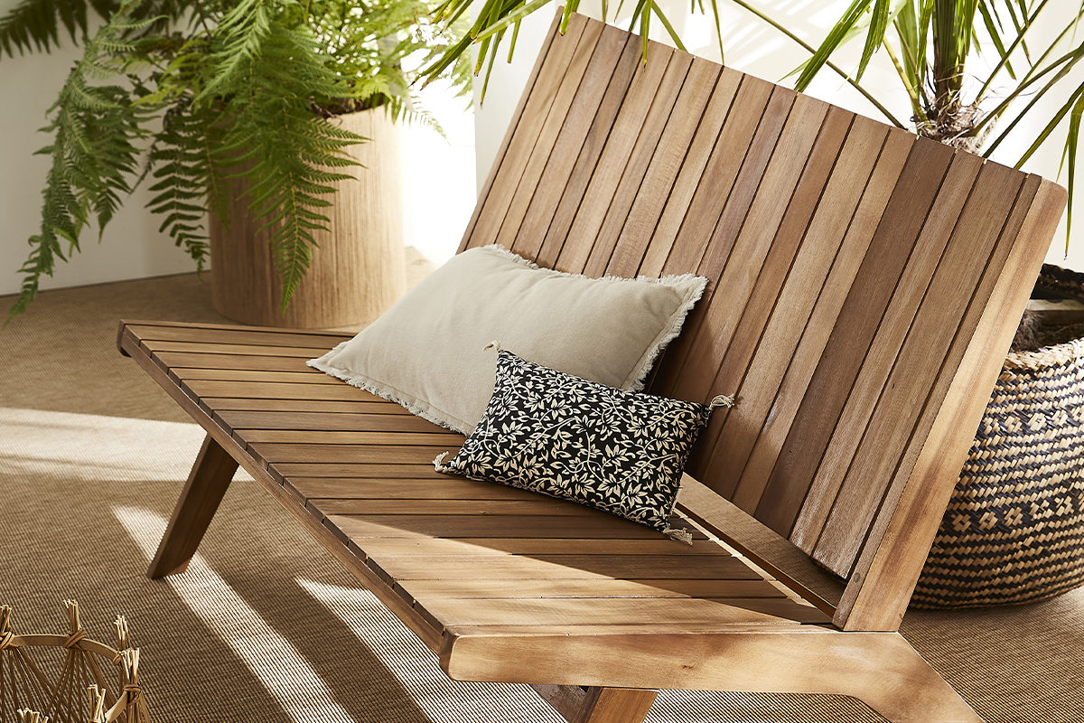 De la terrasse urbaine au salon moderne, la banquette TIDAK trouve sa place partout. L'assise (L116 x P49 cm), dans le prolongement du pied arrière, est légèrement inclinée pour encore plus de confort. On aime aussi l'alternance de lattes de différentes largeurs (L7 et L5 cm) qui apporte une vraie dimension contemporaine.