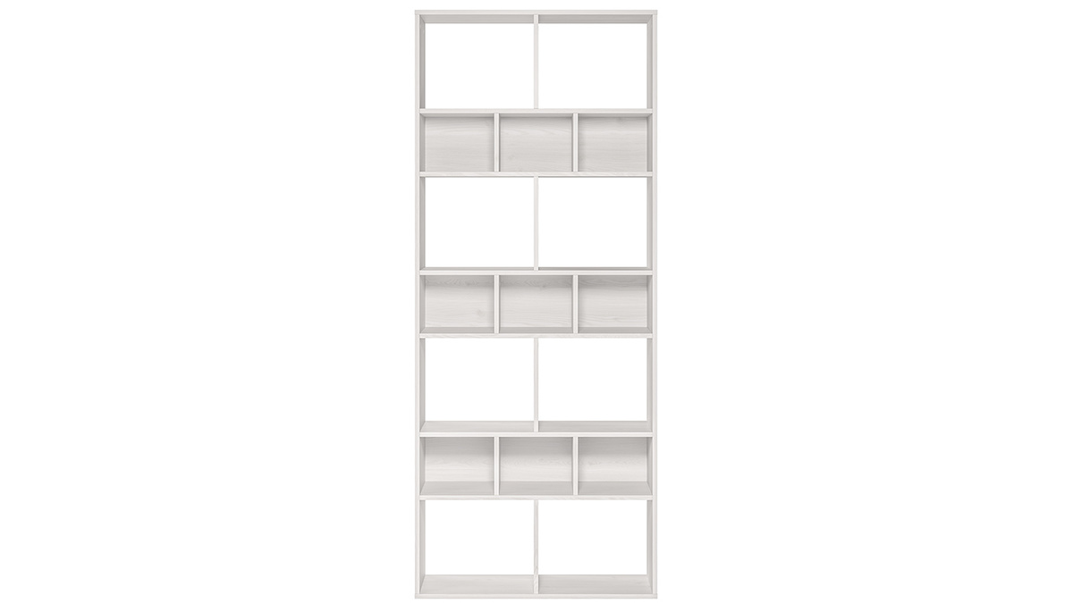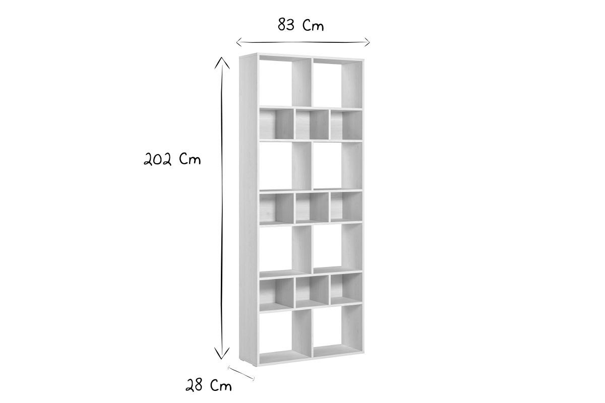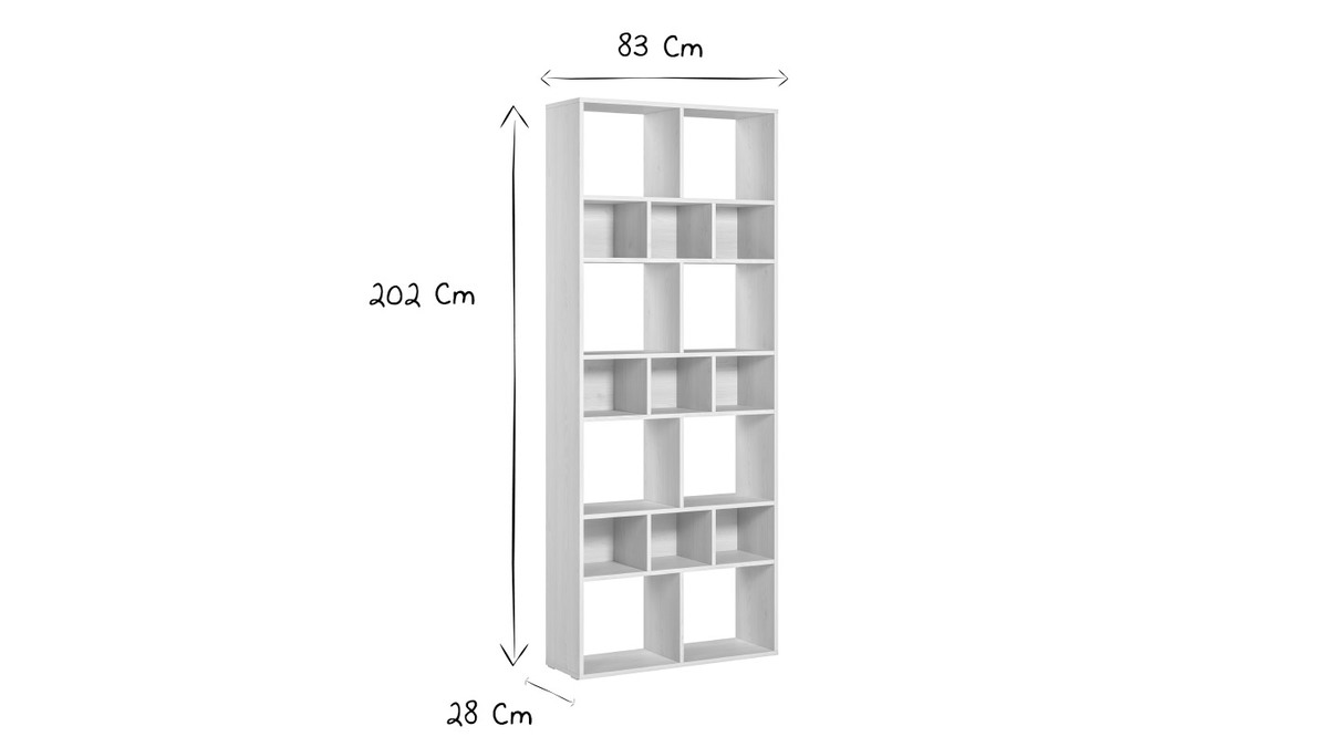 Avec sa faible profondeur (28 cm) et ses 83 cm de large, cette bibliothèque n'encombre pas l'espace. Et pourtant ! Avec ses 2 m de haut et ses 17 niches de tailles différentes, c'est un concentré de rangement astucieux. Livres, objets du quotidien, accessoires déco... chaque élément y trouvera sa place.