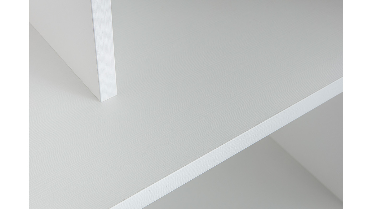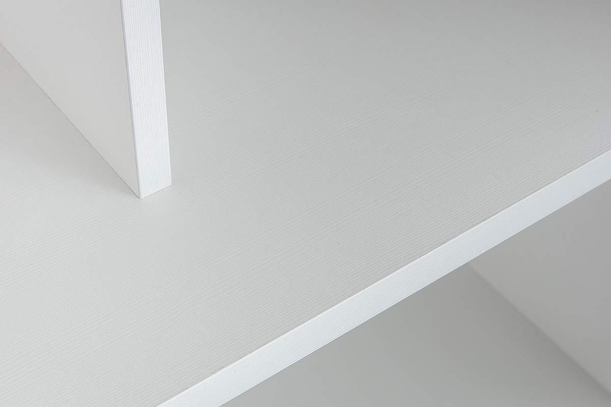 Meuble de rangement fabriqué en Europe. La bibliothèque design bois blanc L92 cm EPURE est livrée prête à assembler.