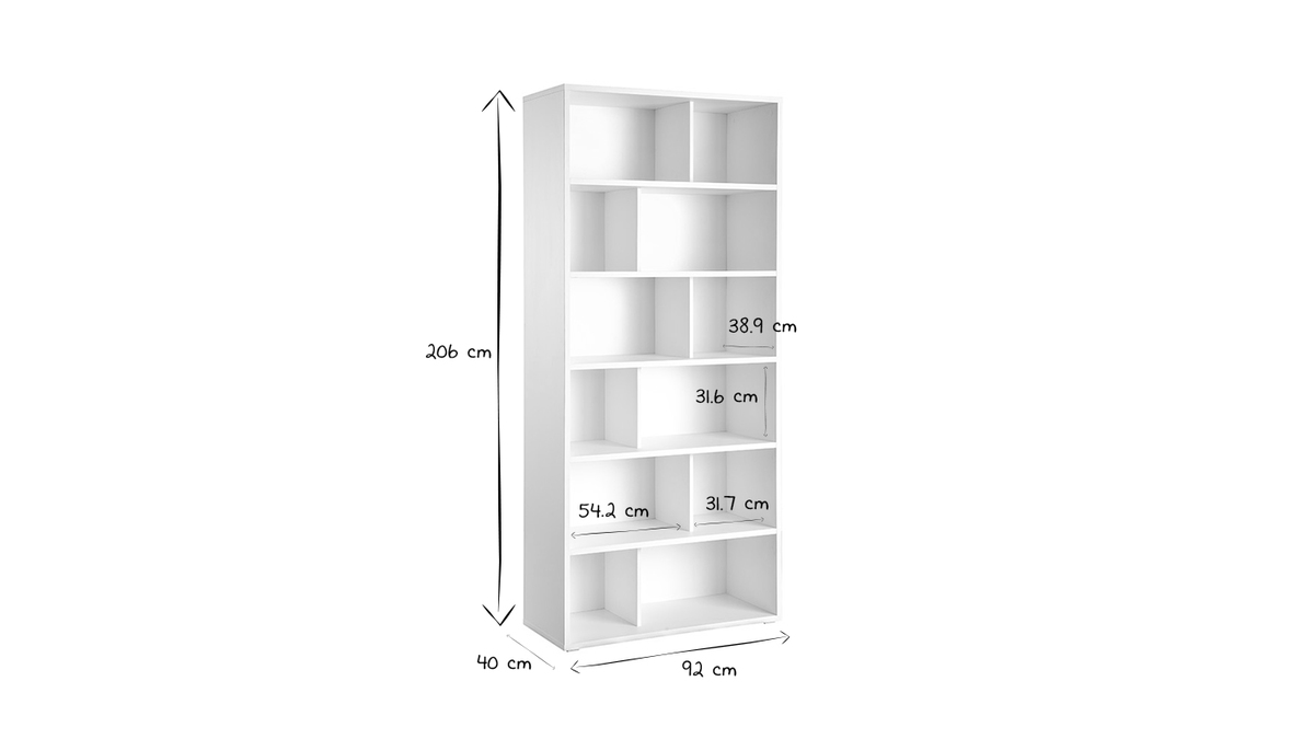Avec ses 12 casiers de rangement, cette bibliothèque design est la solution parfaite pour tous ceux qui cherchent un meuble de rangement pratique et gain de place. Grâce à ses 92 cm de large et ses 2 m de haut, cette bibliothèque haute permet de ranger un maximum d'affaires en prenant un minimum de place. Vous pourrez ordonner vos livres, dossiers, souvenirs et boîtes de rangement dans un même meuble.