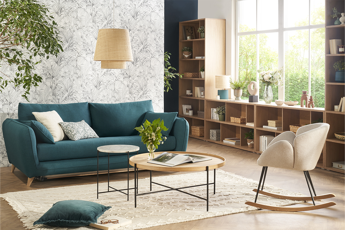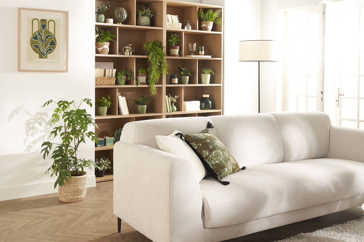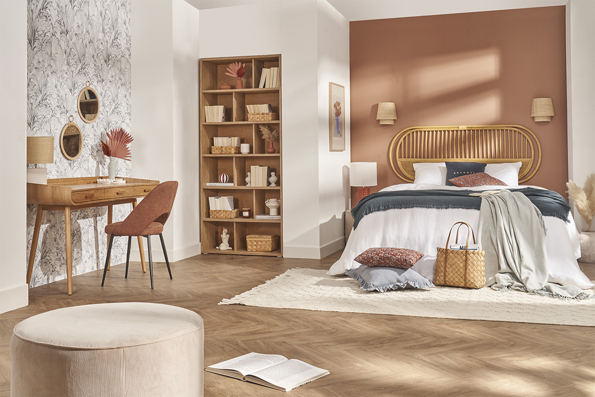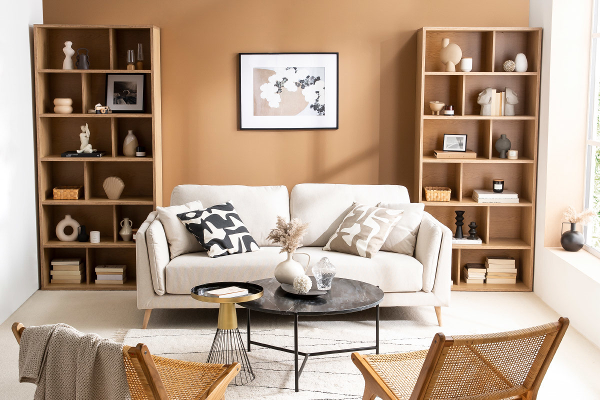 La petite astuce déco ? Disposez quelques petits paniers en osier sur certaines étagères pour y déposer vos affaires. Vous donnerez à cette grande bibliothèque (dimensions L92 x P40 x H206 cm) un petit esprit nature, pile dans la tendance.