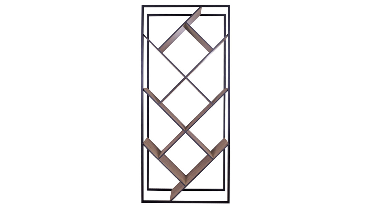 Son cadre en métal noir lui donne une allure et une finesse incroyable, tandis que les étagères croisées qui forment 3 losanges centraux apportent une dimension géométrique originale et pleine de charme.