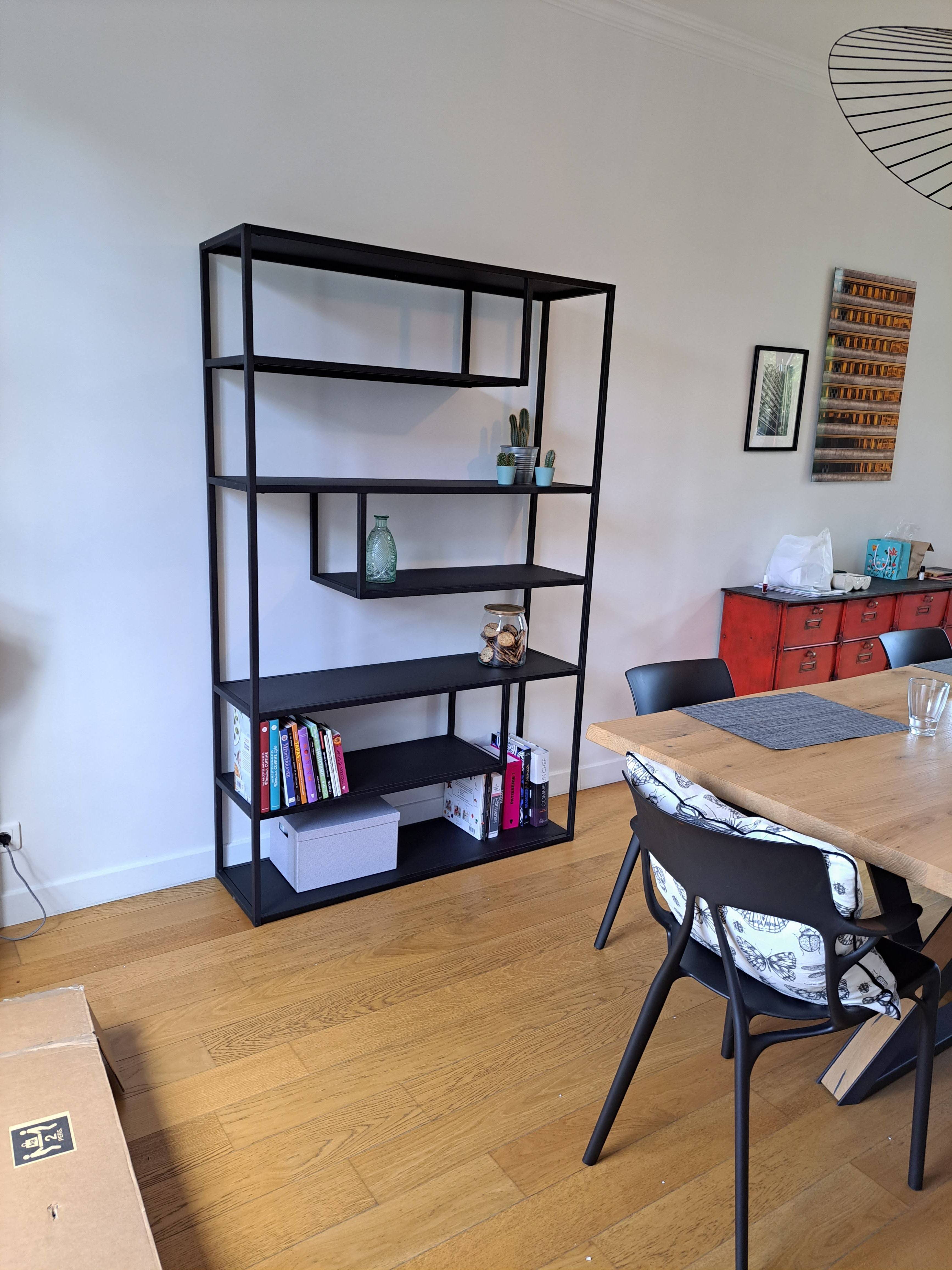 Parfait équilibre en style et fonctionnalité ! Avec ses dimensions L125 x P35 x H188 cm, cette grande bibliothèque ouverte - robuste grâce à sa fabrication en métal - TETRIS profite d'une grande stabilité et légerté de part sa conception ajourée et bien pensée !