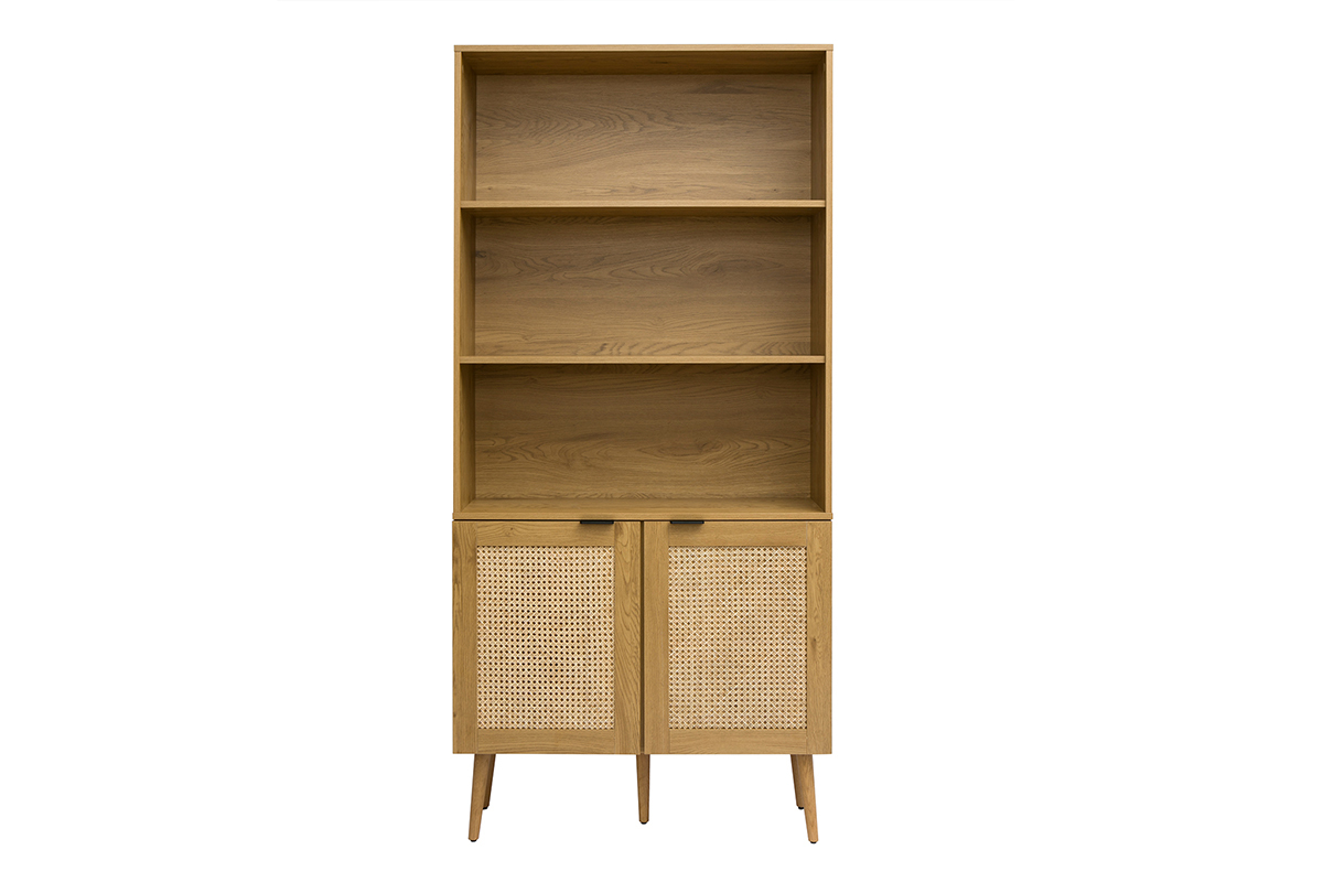 La bibliothèque en bois MANILLE est un parfait mariage de matériaux, mêlant le charme chaleureux du chêne à la légèreté du cannage en rotin. Les trois grandes étagères ouvertes offrent un espace idéal pour exposer vos livres, objets décoratifs ou plantes, tout en créant une atmosphère élégante et organisée.