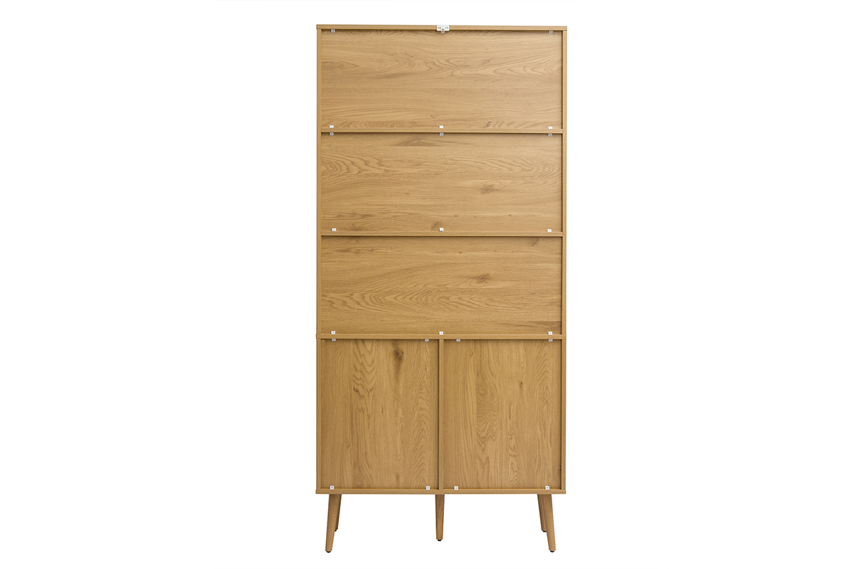 Les pieds en chêne massif renforcent la stabilité tout en apportant une touche de raffinement supplémentaire. Le design épuré et naturel de cette bibliothèque s'inscrit dans un style intemporel, s'adaptant à des intérieurs contemporains ou bohèmes chic.