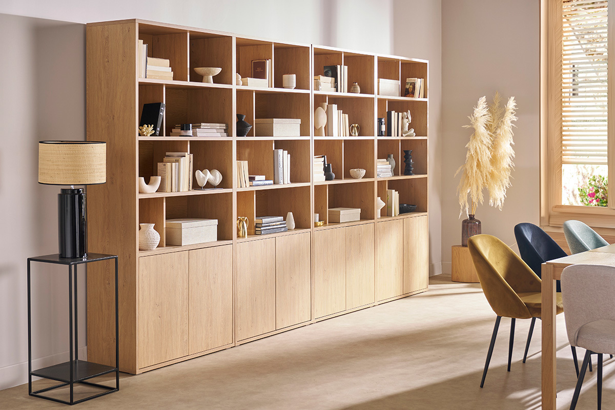 Grâce à ses 8 niches ouvertes et à ses 4 rangements fermés, NAGANO est une bibliothèque ultra fonctionnelle. On adore ce meuble de rangement en bois pour compléter l'aménagement d'un séjour, d'une chambre, ou d'un bureau !