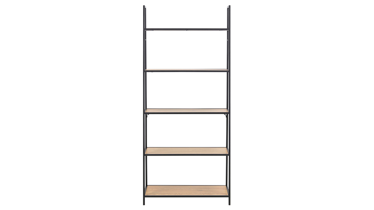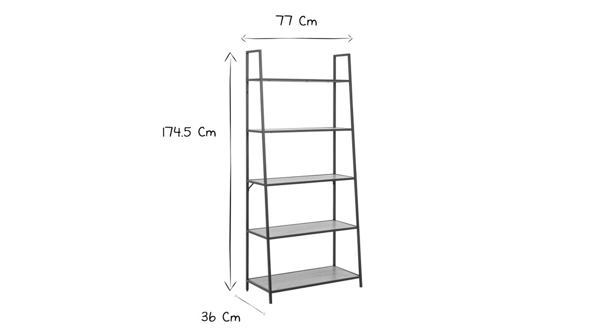 Les cinq étagères de la bibliothèque TRESCA offrent une belle surface de rangement. Elles permettent d'optimiser le rangement dans des pièces qui en manquent. Les dimensions de ce meuble (L77 x P36 x H174.5 cm) sont adaptées aux espaces réduits. Pour un espace de travail ou un coin lecture dans un style industriel marqué, on multiplie les étagères TRESCA et on les accompagne du bureau assorti.