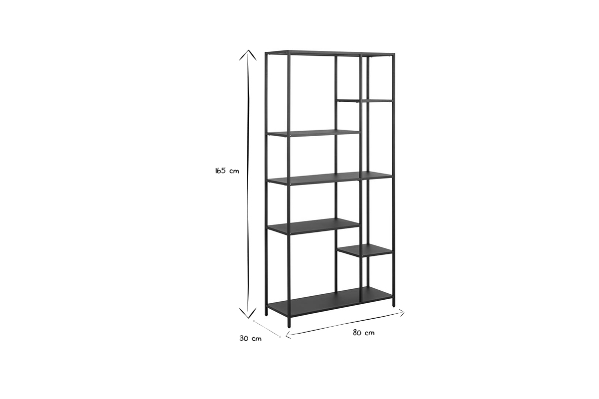 Avec sa silhouette minimaliste et ses dimensions parfaites (L80 x P30 x H165 cm), cette bibliothèque haute en métal noir s'intègrera avec discrétion dans votre intérieur, quel que soit son style.