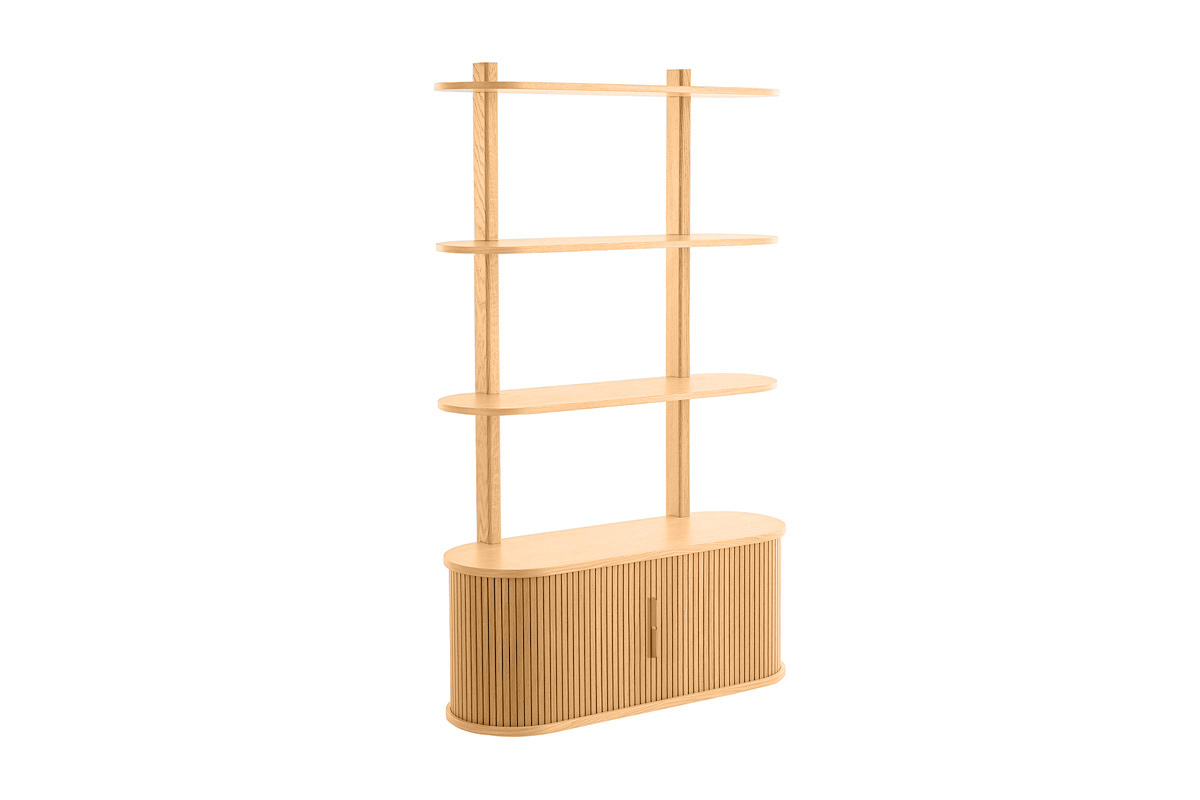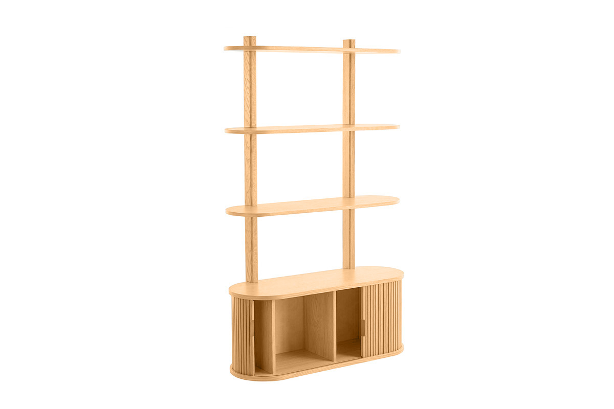 Parfait équilibre de vides et de pleins, formes à la fois délicates et surprenantes, cette bibliothèque moderne en bois harmonise inspiration nippone, lignes scandinaves et touche vintage avec style !