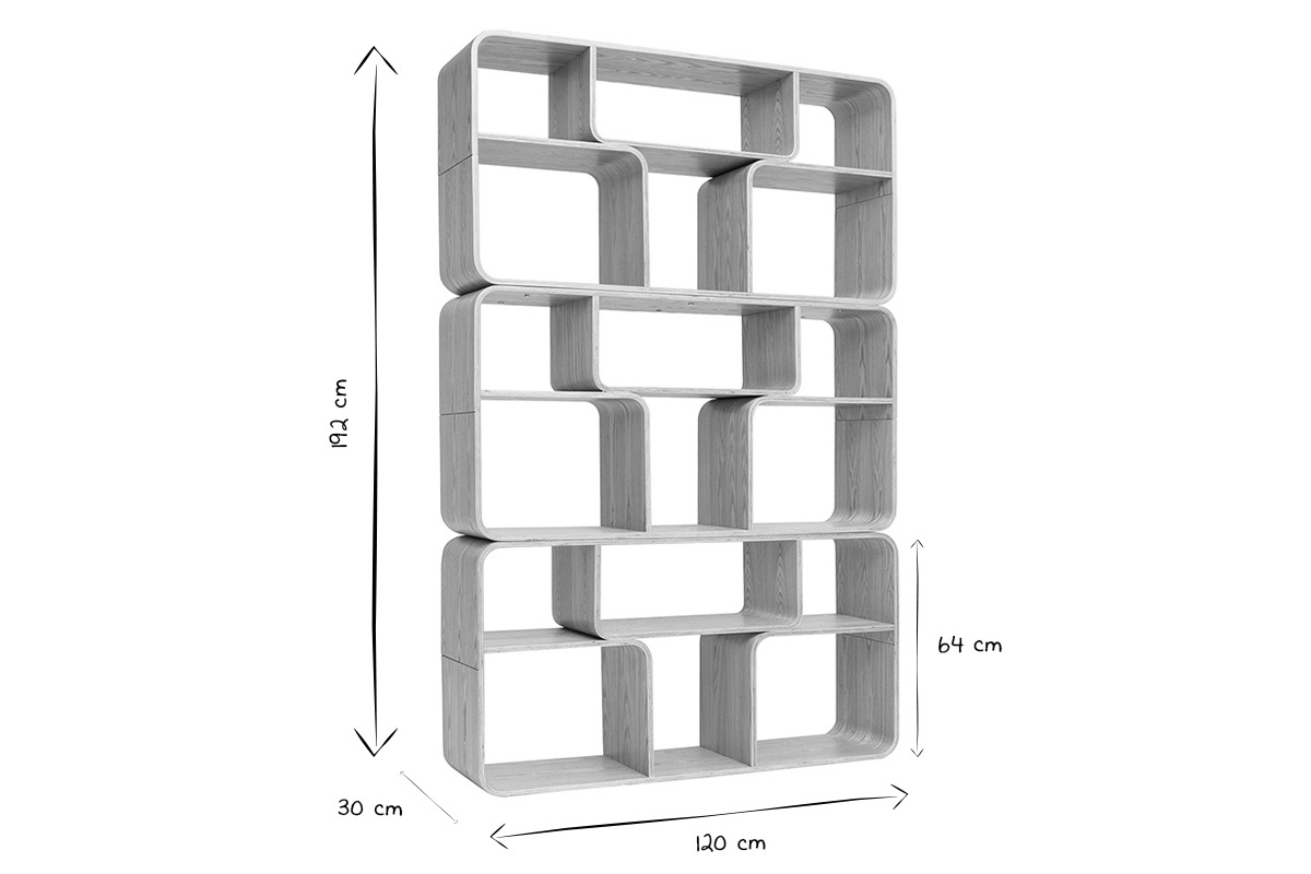 Optez pour la bibliothèque WARHOL en bois clair frêne et offrez à votre intérieur une touche naturelle et sophistiquée, tout en optimisant votre espace de rangement avec style.