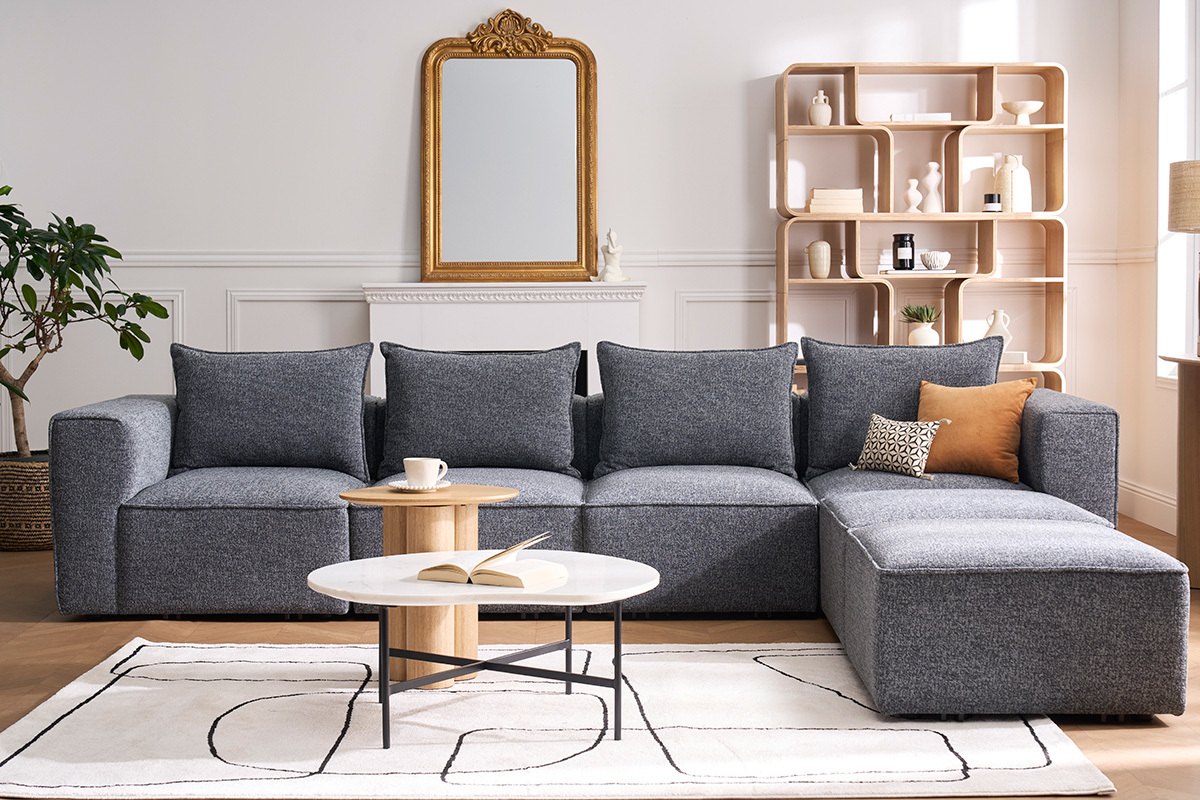 Grâce à son design modulaire composé de trois grands blocs, la bibliothèque haute WARHOL propose plusieurs compartiments ouverts de tailles variées. Cette disposition originale permet de jouer avec les volumes et de créer une mise en scène personnalisée pour vos objets. Livres, cadres photo, plantes et accessoires déco trouveront facilement leur place sur ses étagères ergonomiques. Son allure asymétrique casse la monotonie des bibliothèques classiques, tout en optimisant l’espace de rangement.